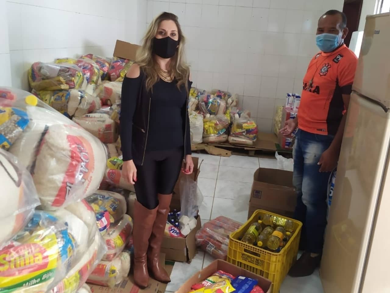 Foram arrecadados 1,5 toneladas de alimentos não perecíveis destinados a Secretaria de Ação Social e Habitação, que farão a distribuição a famílias carentes.