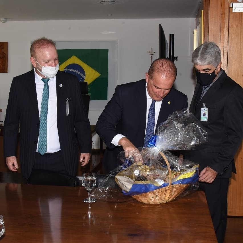 O prefeito, em sua visita, levou produtos tradicionais de nossa cidade ao Ministro da Secretaria Geral da Presidência da República, Onyx Lorenzoni, como uma forma de apresentar nossa tradição e cultura no ramo alimentício.