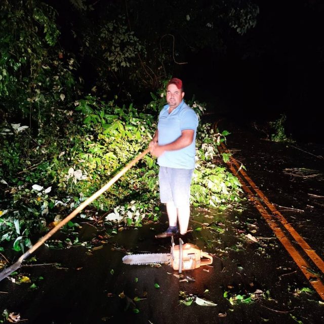Com a forte chuva que caiu no final da tarde deste sábado, 28/05/21, mais uma vez várias árvores caíram nas estradas, tanto na zona urbana como rural.