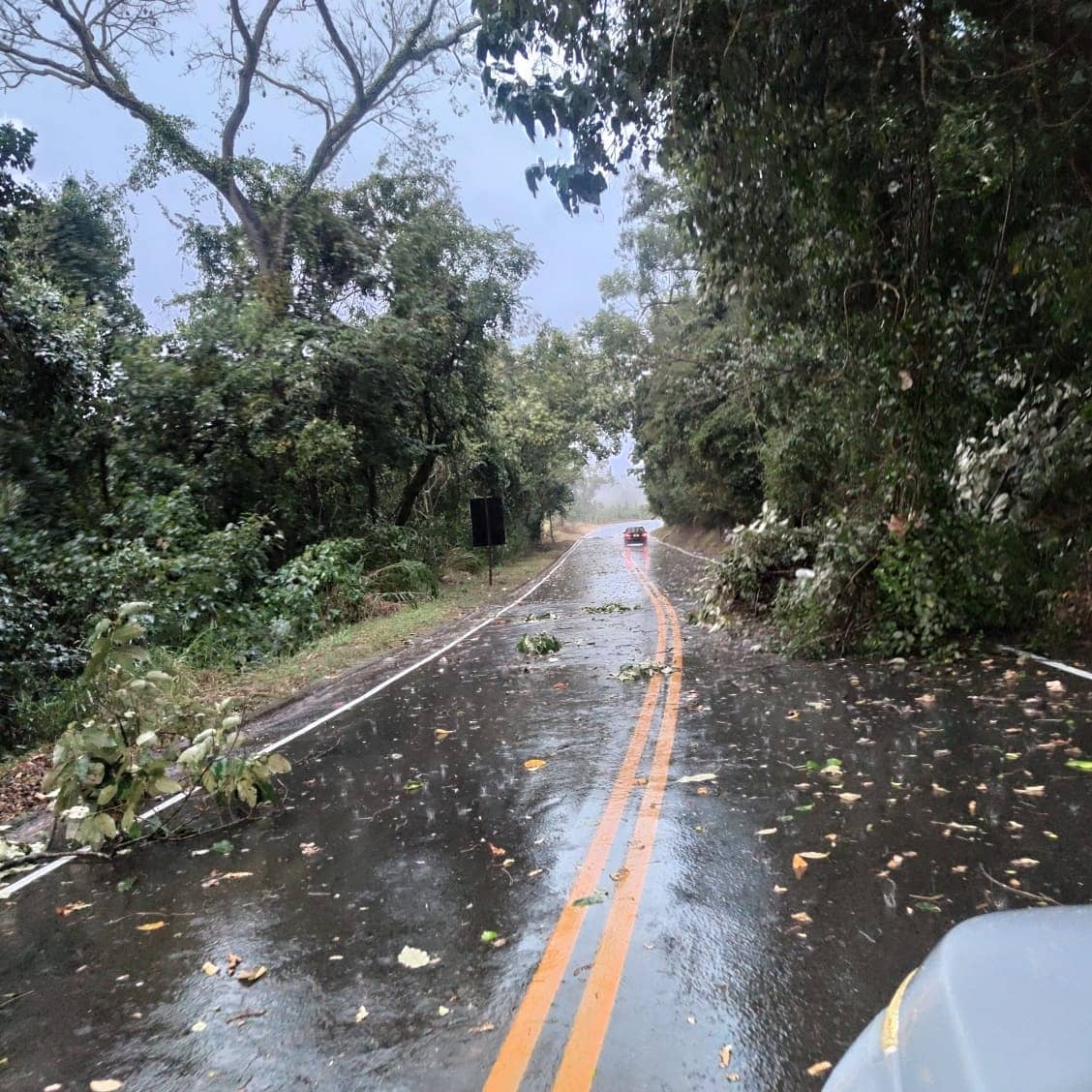 Equipes da Prefeitura de Muzambinho realizaram a limpeza e retirada dos destroços que caíram e interromperam as vias de acesso ao município. Na área rural vários moradores também realizaram a sinalização e limpeza de trechos.