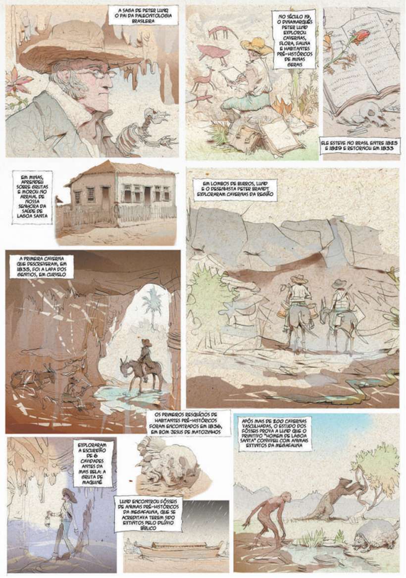 O trabalho do naturalista que revolucionou a ciência ao se embrenhar por grutas incrustadas no cerrado mineiro no século 19, retratado pelos traços do ilustrador Lelis