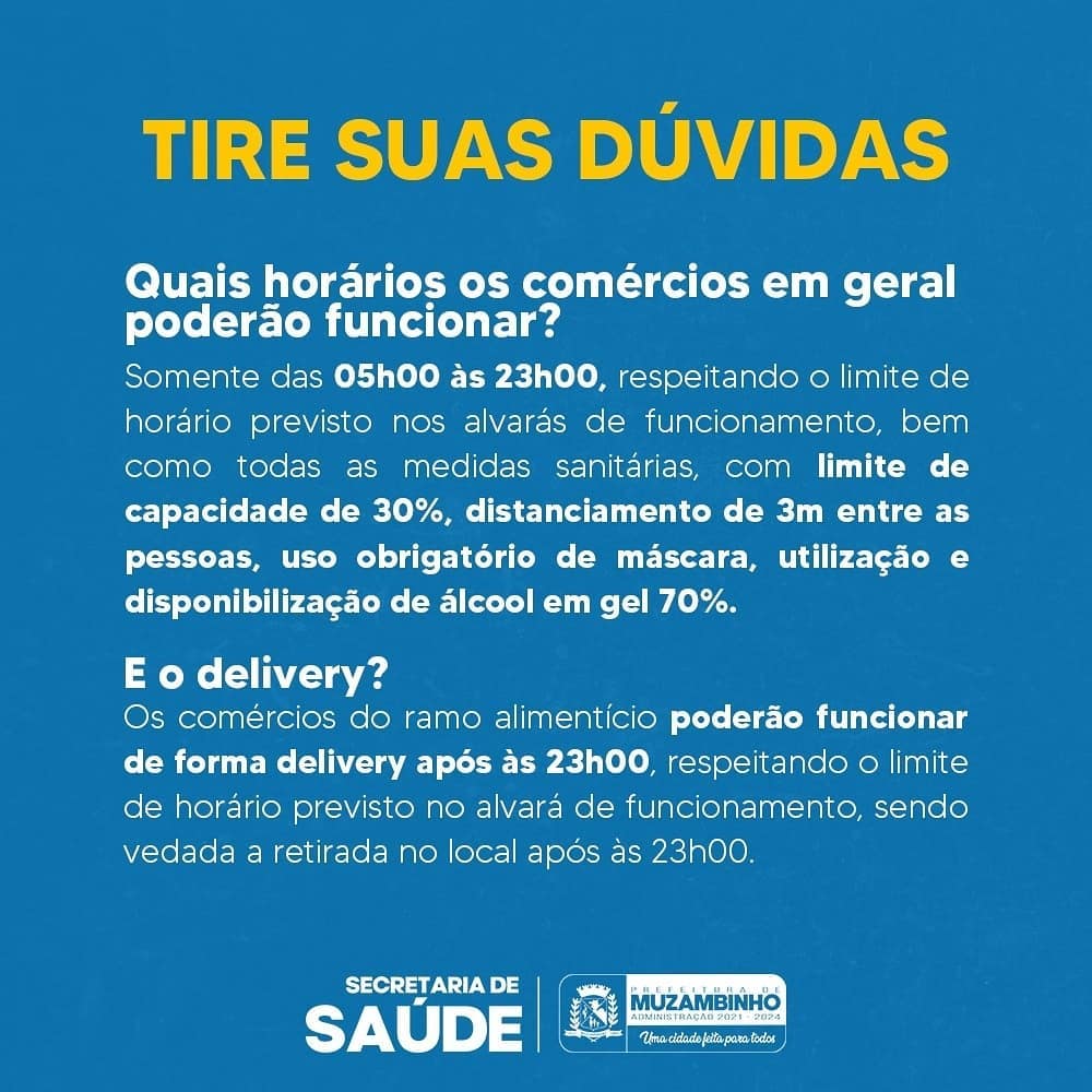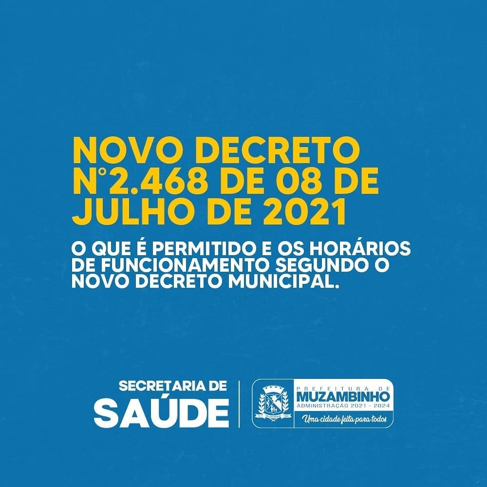 A partir de hoje, 08 de julho de 2021, um novo decreto entra em vigência, com novos horários de funcionamento comercial e liberação de atividades esportivas e de lazer.