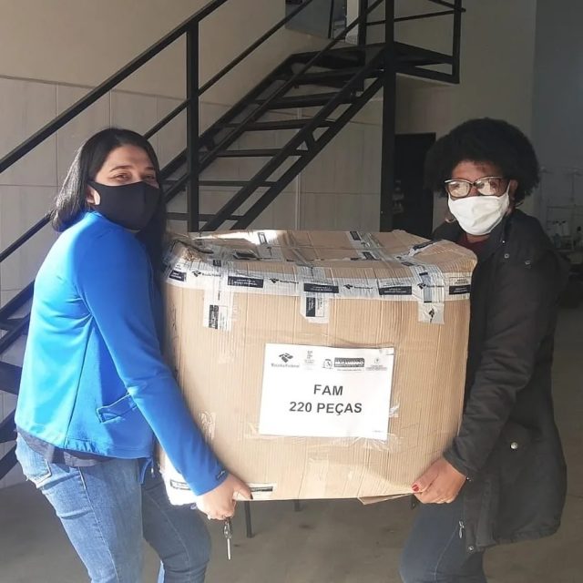 Tal material é fruto de apreensão da Receita Federal, que, após processo de descaracterização, foi reparado com muito capricho e cuidado pelas costureiras da Casa do Empreendedor.