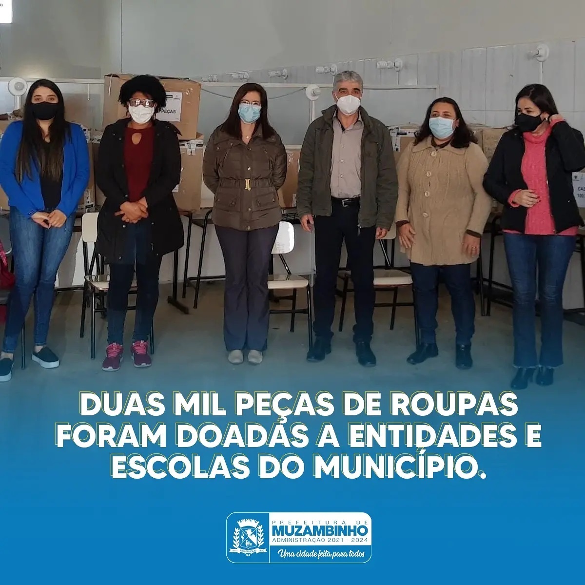 A Secretaria de Ação Social, Trabalho e Habitação, através da Casa do Empreendedor e Desenvolvimento Social, em parceria com o Instituto Federal Campus Muzambinho e com a Receita Federal, realizou a entrega de 2 mil peças de roupas a entidades assistenciais e escolas do município.