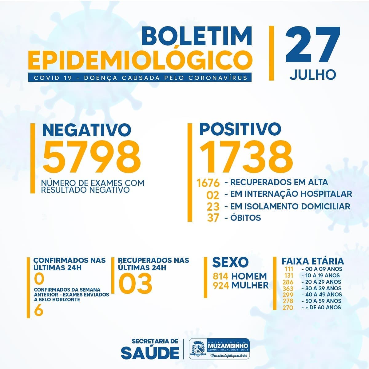 Boletim COVID-19 – Boletim do dia 27/07/21 – Muzambinho/MG