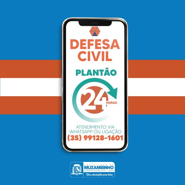 A Defesa Civil de Muzambinho desenvolve o papel de ações preventivas, de socorro, assistenciais, reabilitadoras e reconstrutivas, destinadas a evitar desastres ou minimizar seus impactos para a população e a restabelecer a normalidade social. O atendimento é 24h por dia, 7 dias por semana. Para entrar em contato basta enviar uma mensagem via WhatsApp ou telefonar para (35) 99128-1601