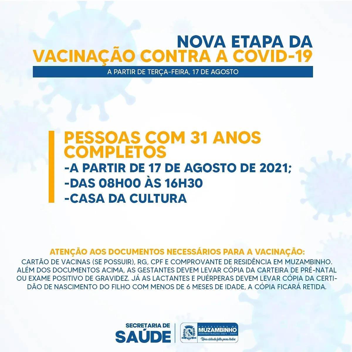 – A PARTIR DE 17/08 (Terça-Feira): PESSOAS COM 31 ANOS COMPLETOS;