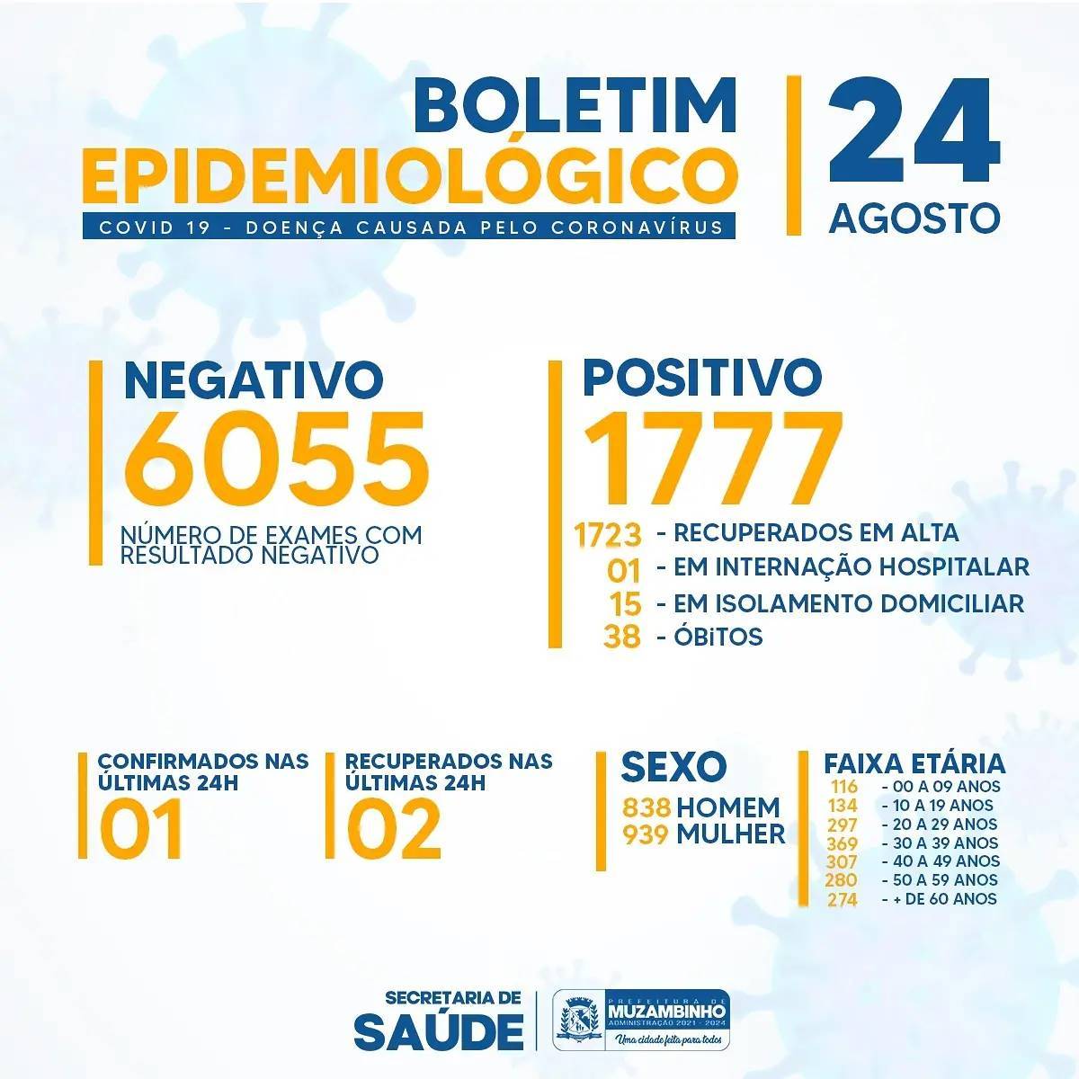 Boletim COVID-19 – Boletim do dia 24/08/21 – Muzambinho/MG