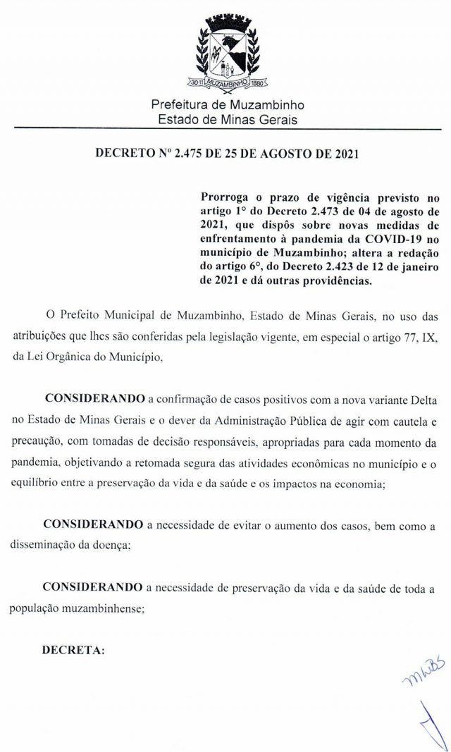 Na ultima semana dia 25, o Prefeito decretou a Prorrogação do artigo 1º do Decreto 2473/21.