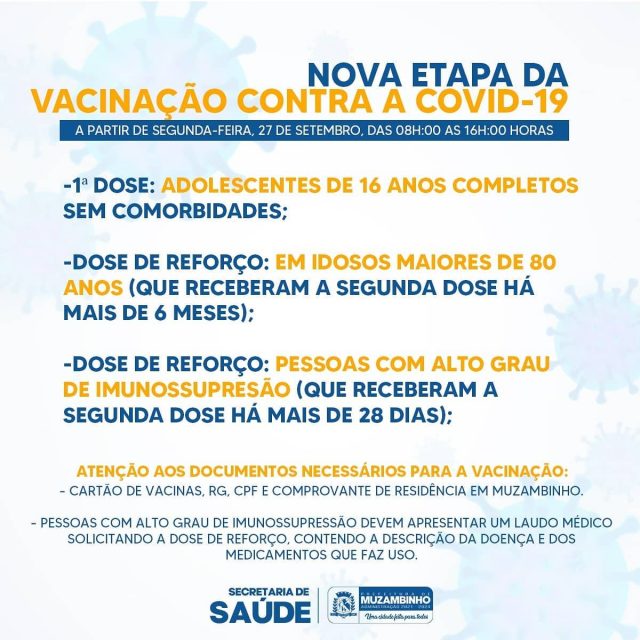 Vacinação em Muzambinho – Adolescentes com 16 anos completos e Idosos 80+