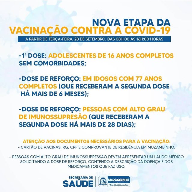 Vacina Dose de Rerforço 77 anos ou mais e Adolescente acima de 16 anos.