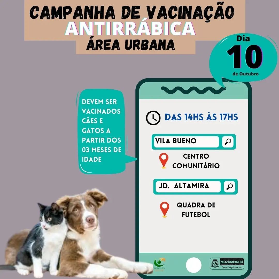 É neste sábado e domingo, 09 e 10/10, Campanha de Vacinação Antirrábica para cães e gatos, Zona Urbana de Muzambinho.