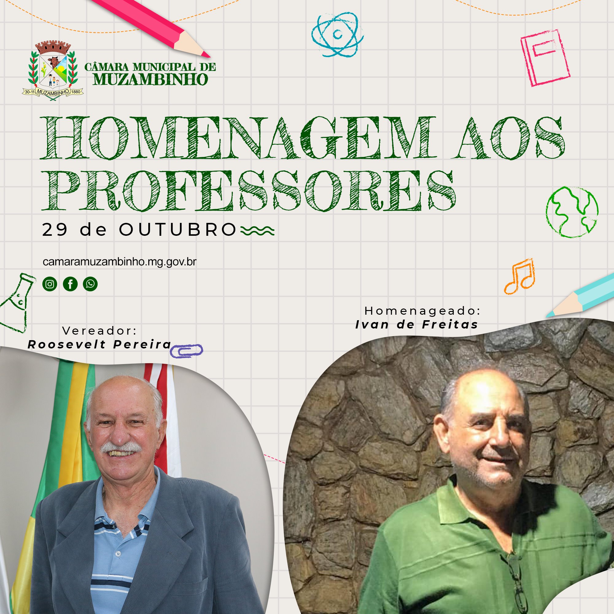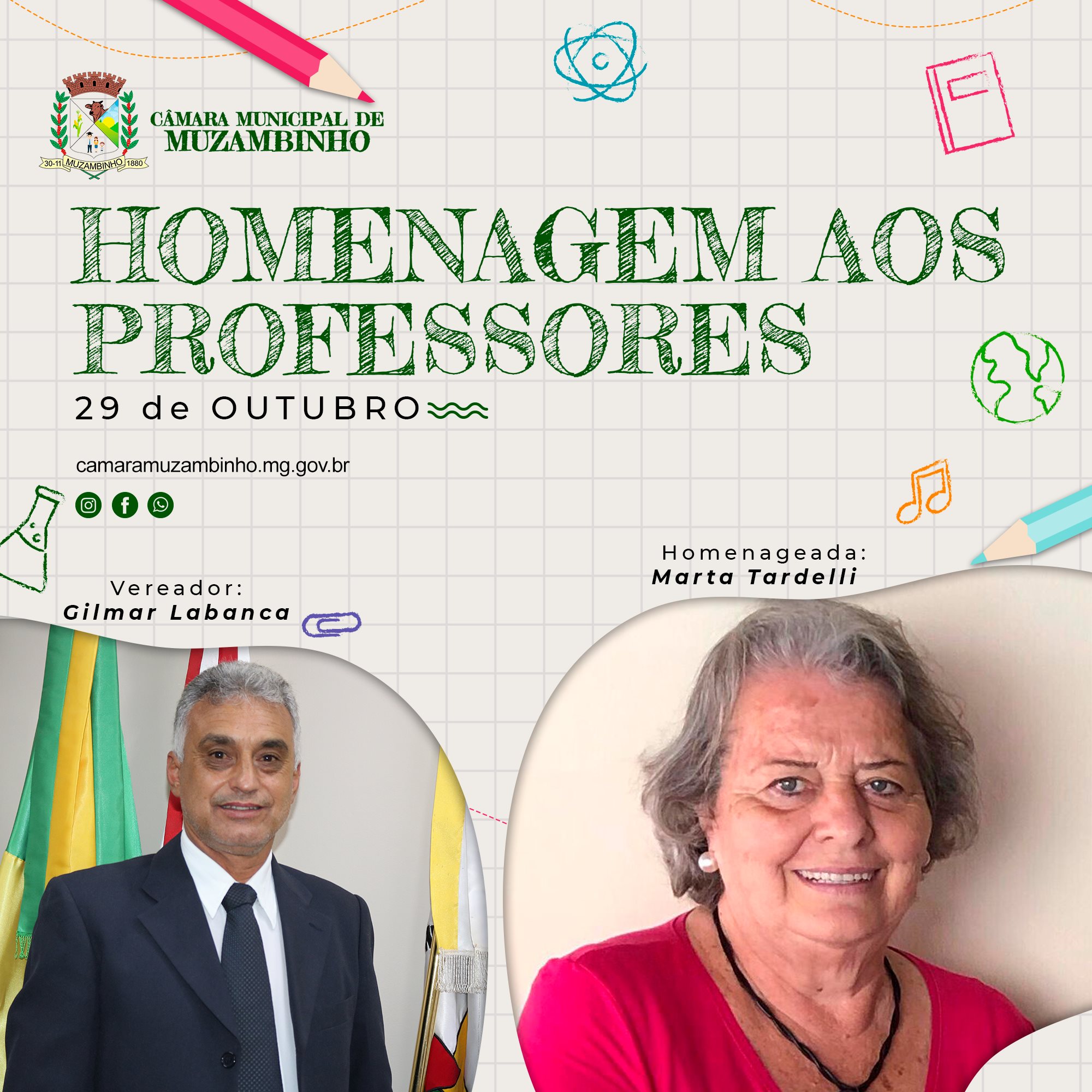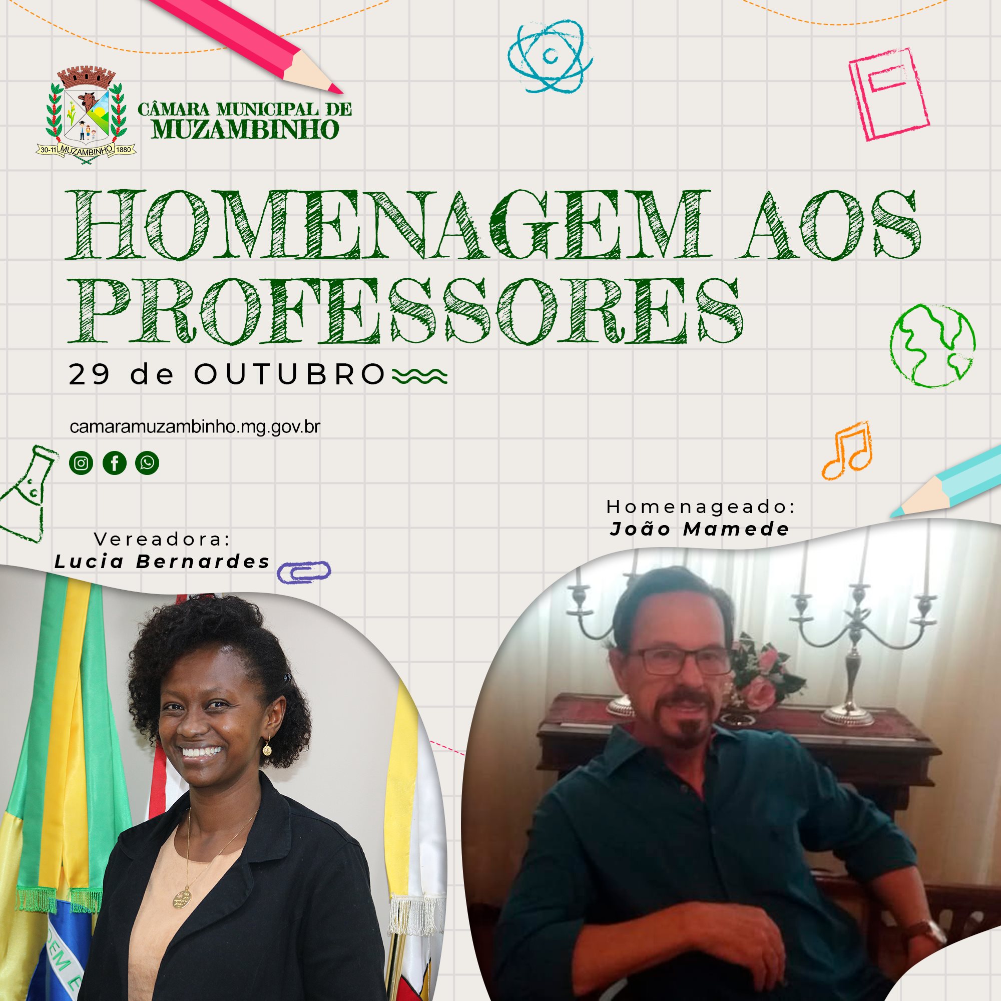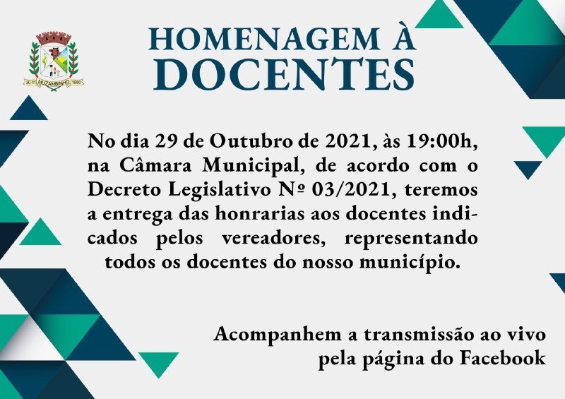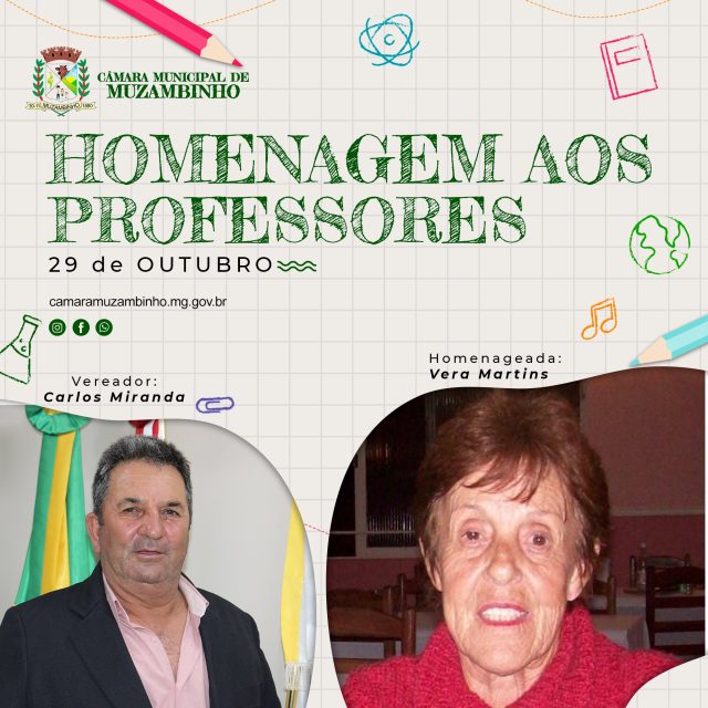 Mais Artigos DestaqueNossa CidadeReligião 21ª Marcha para Jesus será realizada em Muzambinho no dia 6 de dezembro DestaqueObituário Faleceu aos 70 anos o Sr. Lázaro Pereira DestaqueEsportesNossa Cidade Corredor muzambinhense brilha e vence prova noturna em Caldas DestaqueEventos SociaisNossa CidadePolíticaAcompanhe Ao Vivo – Vereadores homenageiam Docentes em Muzambinho. Redação29 de outubro de 20211min0 Solenidade acontecerá nesta sexta-feira, 29/10/21, às 19h Post Views: 1.286 Câmara de VereadoresDocenteProfessorVereadores