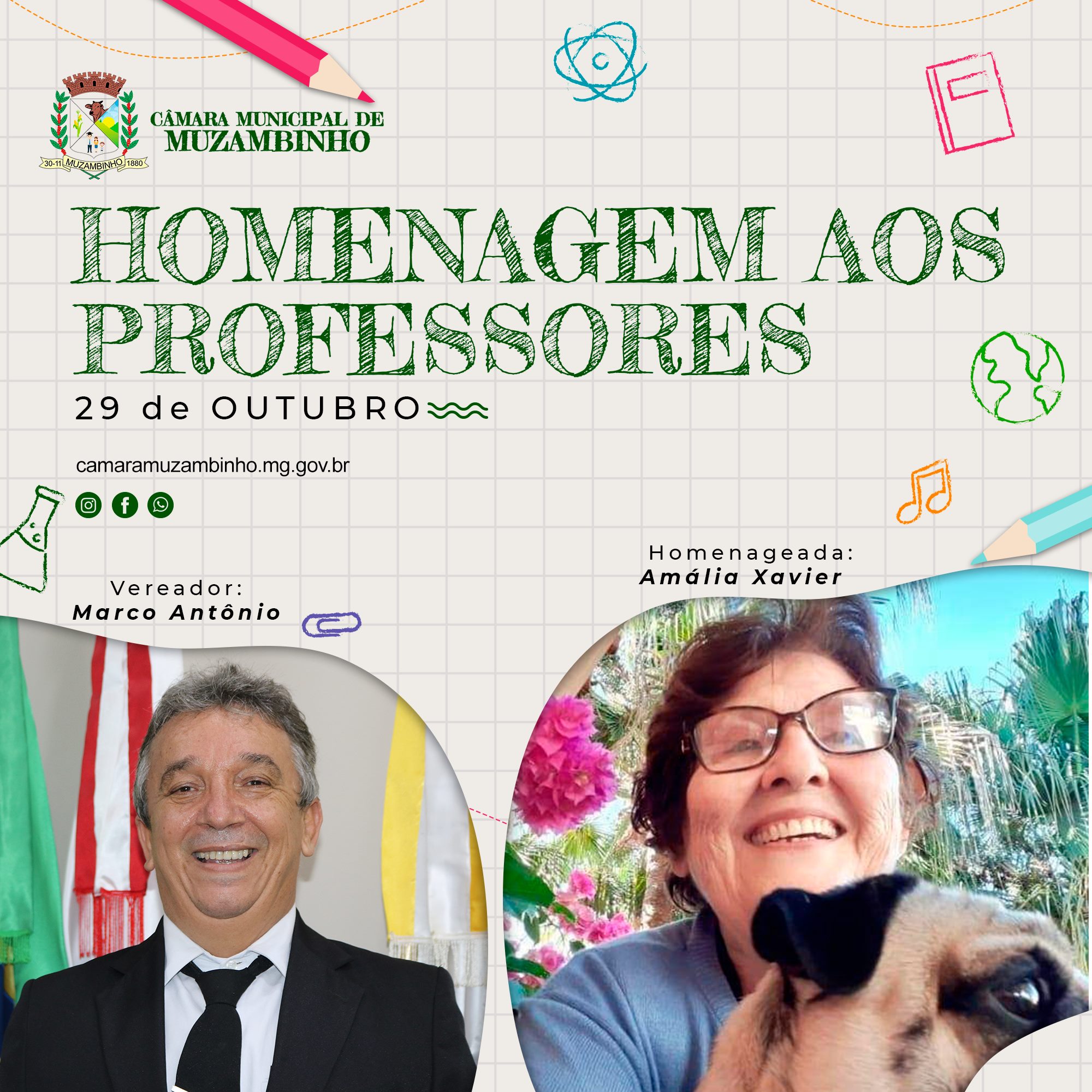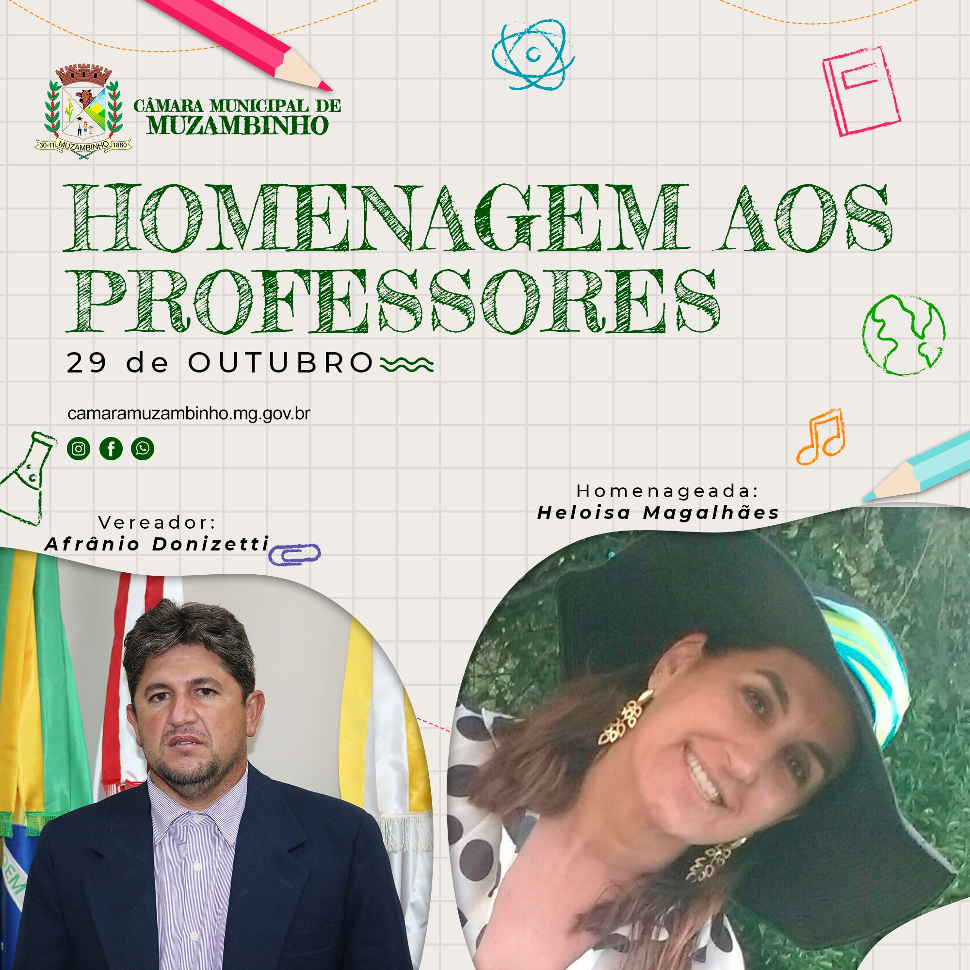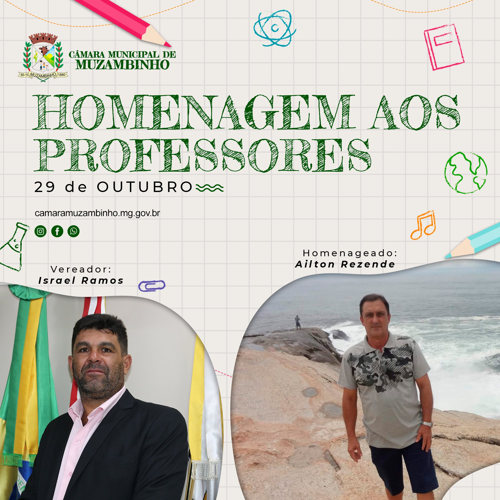 Mais Artigos DestaqueNossa CidadeReligião 21ª Marcha para Jesus será realizada em Muzambinho no dia 6 de dezembro DestaqueObituário Faleceu aos 70 anos o Sr. Lázaro Pereira DestaqueEsportesNossa Cidade Corredor muzambinhense brilha e vence prova noturna em Caldas DestaqueEventos SociaisNossa CidadePolíticaAcompanhe Ao Vivo – Vereadores homenageiam Docentes em Muzambinho. Redação29 de outubro de 20211min0 Solenidade acontecerá nesta sexta-feira, 29/10/21, às 19h Post Views: 1.286 Câmara de VereadoresDocenteProfessorVereadores