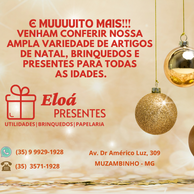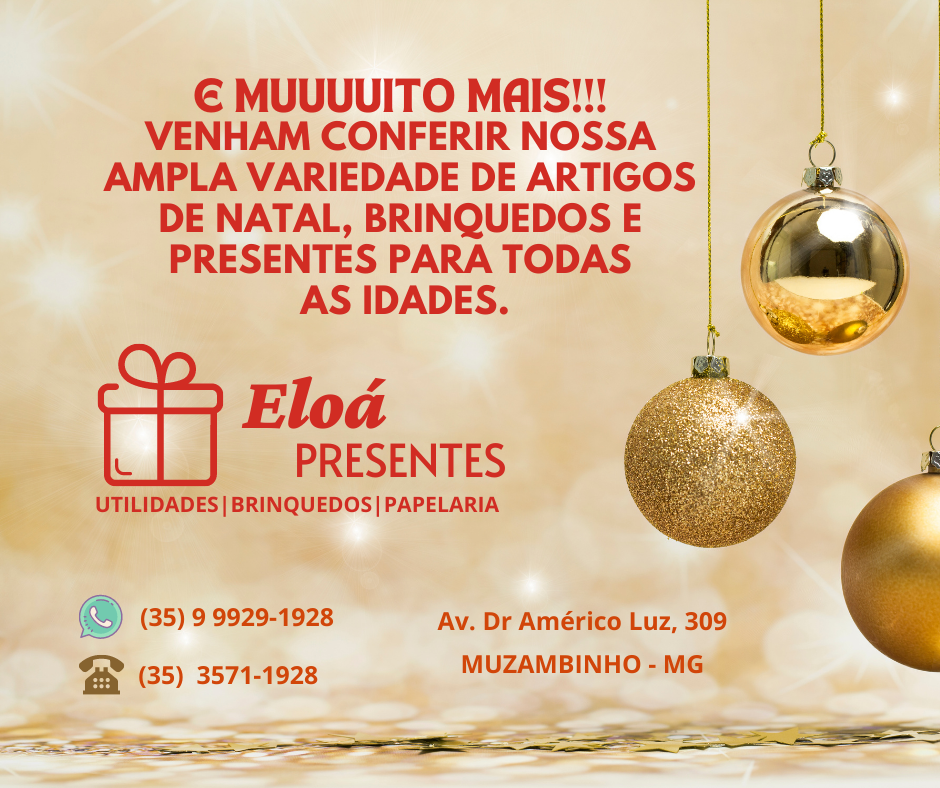 Mais Artigos Cozinha e CulináriaDestaqueEmpreendedorismoNossa CidadeParceirosTecnologia Loja Muzambinho.com lança série de vídeos explicando Programa de Afiliados e fortalece economia local DestaqueObituário Faleceu aos 66 anos o Sr. Benjamin Rodinelli Ribeiro AniversáriosEconomiaEventos e FestasParceiros Sicredi celebra dois anos de atuação em Cabo VerdeDestaqueNossa CidadeParceirosA Magia do Natal está no Ar !!! Redação24 de dezembro de 20211min0 Na Eloá Presentes uma Ampla Variedade de Artigos de Natal, venha conferir!!! Post Views: 1.564EloáNatalPresentes