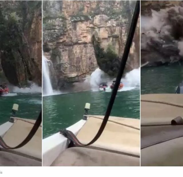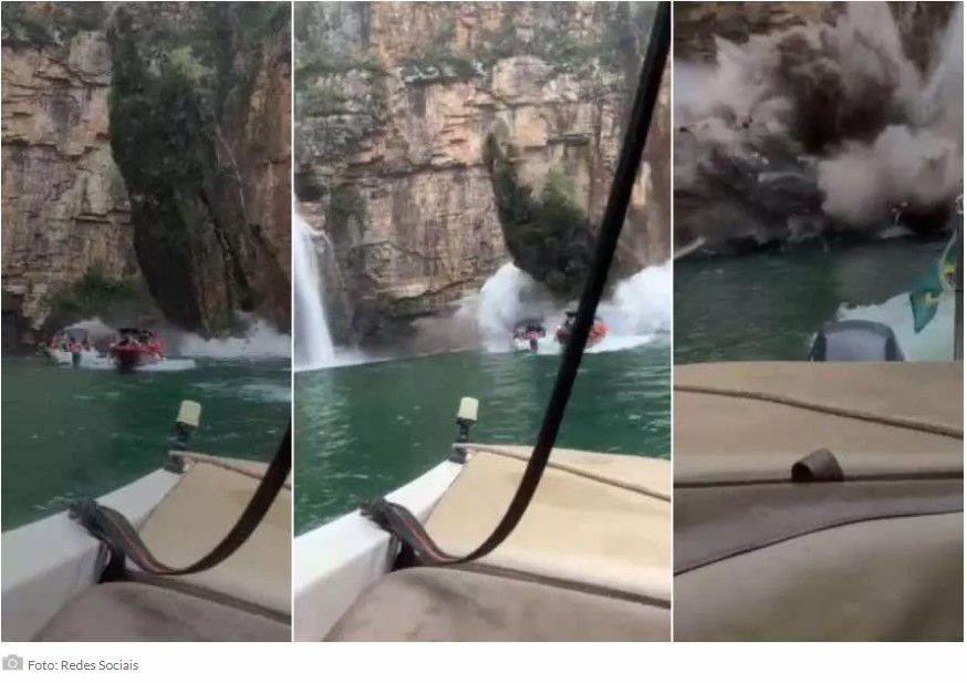 Pedras se soltam de cânion em Capitólio e atingem três lanchas; veja o vídeo