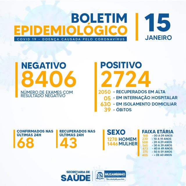 68 pacientes confirmados e UM Óbito no Boletim COVID-19 dia 15/01/22 – Muzambinho/MG