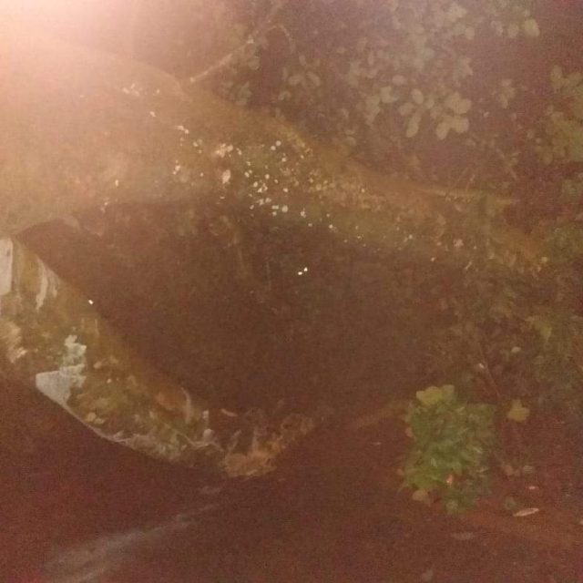Na noite desta segunda-feira (31) caiu um galho de uma figueira, aparentemente saudável, localizada na Praça Pedro Alcântara de Magalhães.