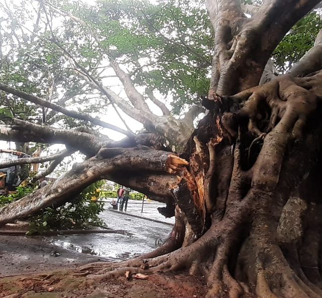 Hoje durante o dia a Defesa Civil com apoio da setor de Meio ambiente de Muzambinho e o Corpo de Bombeiros de Guaxupé, realizaram o corte parcial da árvore devido ao risco iminente. Os trabalhos continuam na praça, portanto a prefeitura pede a colaboração da população para respeitar o isolamento da área e cautela ao transitar pelo local.