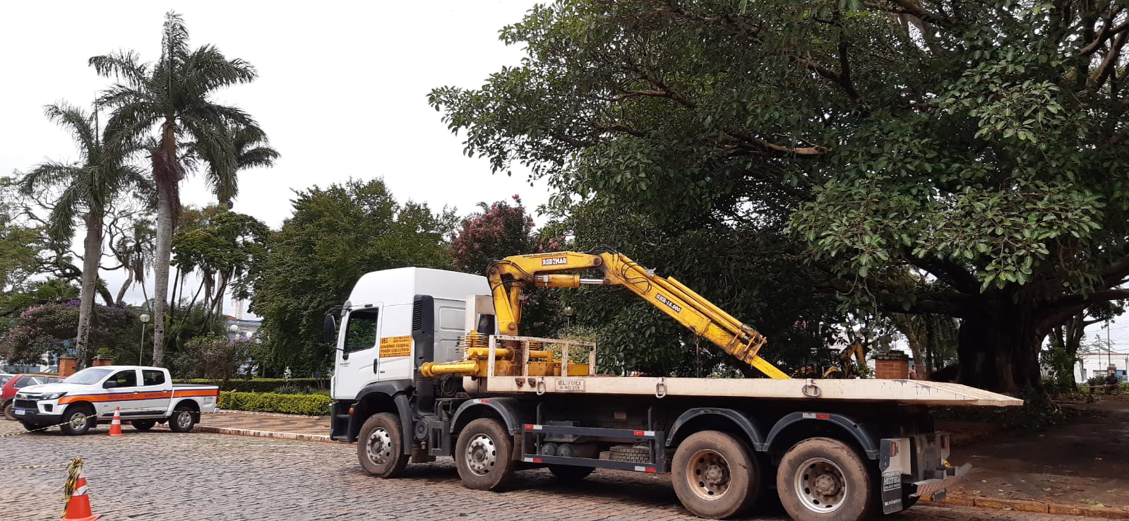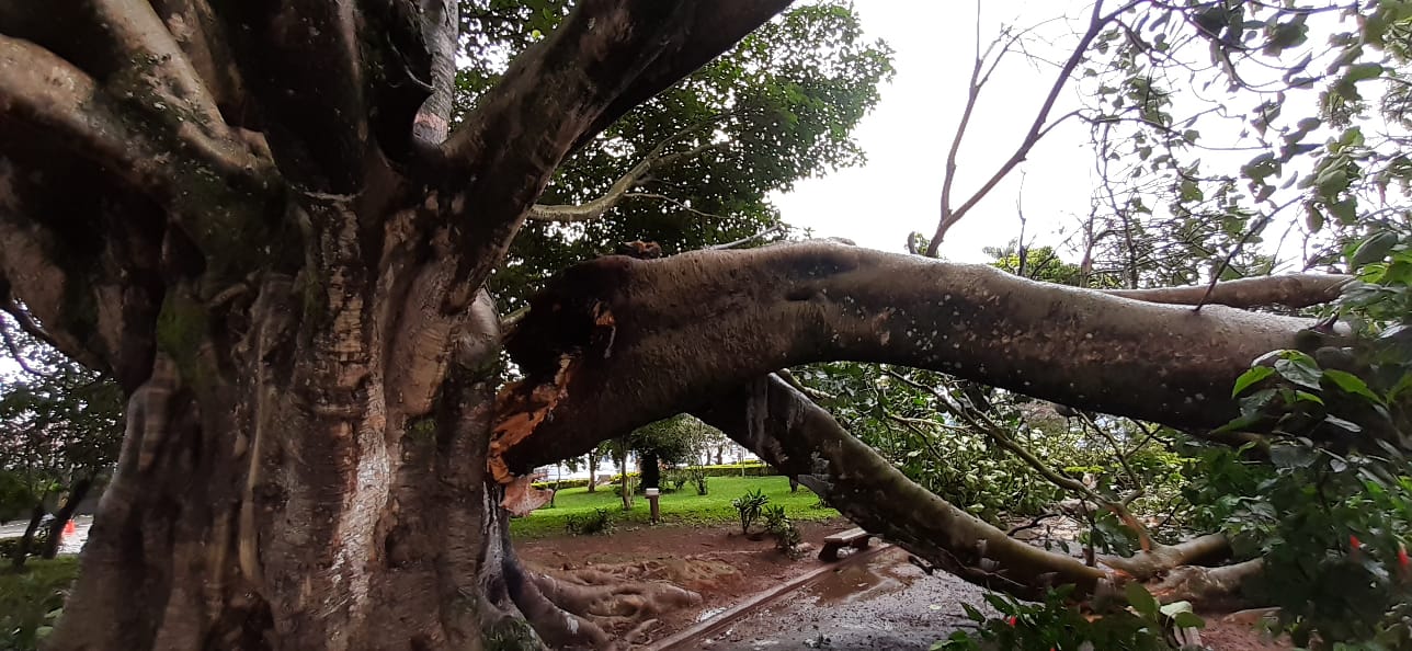 Hoje durante o dia a Defesa Civil com apoio da setor de Meio ambiente de Muzambinho e o Corpo de Bombeiros de Guaxupé, realizaram o corte parcial da árvore devido ao risco iminente. Os trabalhos continuam na praça, portanto a prefeitura pede a colaboração da população para respeitar o isolamento da área e cautela ao transitar pelo local.