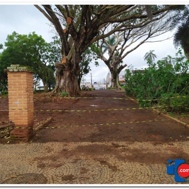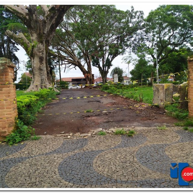 Devido a vários galhos terem cedido de árvores centenárias, provavelmente pelo grande volume de chuvas, alguns pontos da praça foram isolados para a segurança de todos.
