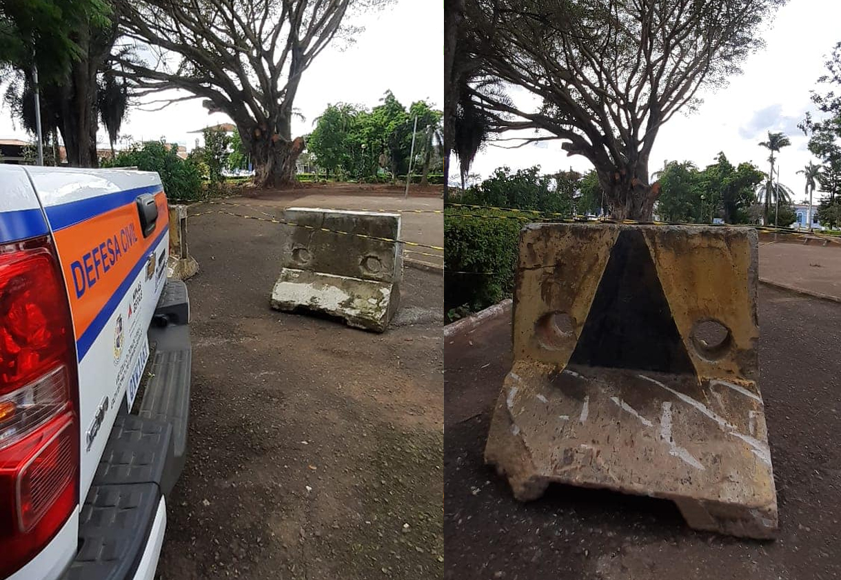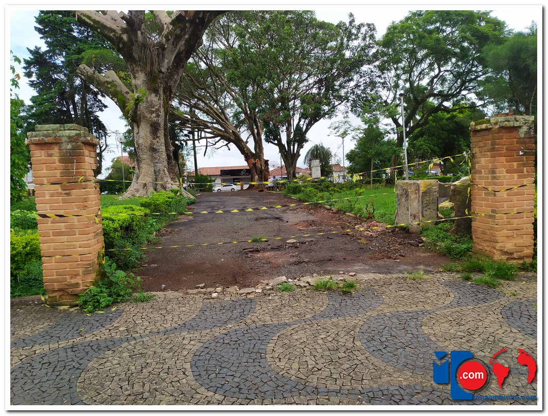 Devido a vários galhos terem cedido de árvores centenárias, provavelmente pelo grande volume de chuvas, alguns pontos da praça foram isolados para a segurança de todos.