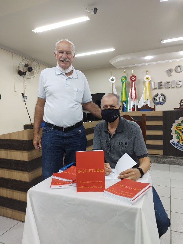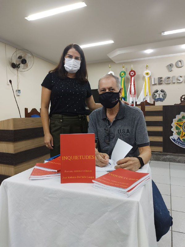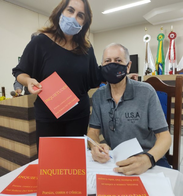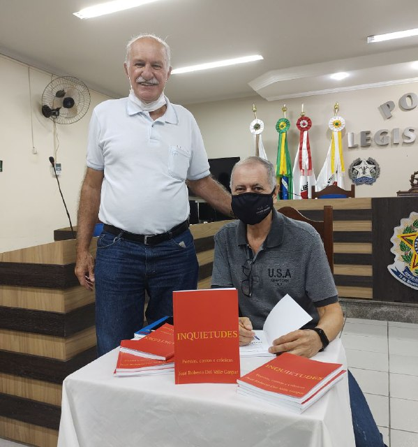 O servidor da Câmara Municipal, o assessor Jurídico, Dr. José Roberto Del Valle Gaspar, lança o livro INQUIETUDES. Vereadores e servidores da Casa, membros da Academia Muzambinhense de Letras, vice-prefeita e Secretária Municipal de Educação, Heloísa Magalhães, entre outros convidados, prestigiaram o escritor.