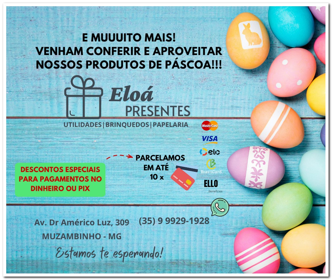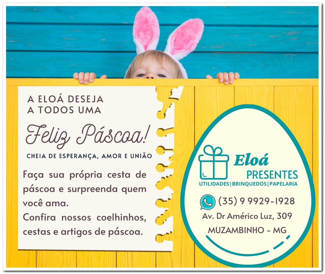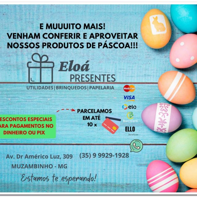 Mais Artigos DestaqueEventos e FestasNossa Cidade Emize Skate Festival chega à 5ª edição em novo espaço no Parque Colina DestaqueParceiros Sicredi terá horário diferenciado de atendimento no final do ano AgronegócioDestaqueNossa Cidade Projeto Campo Limpo recolhe mais de 5 toneladas de embalagens agrícolas na 2ª edição de 2025 em MuzambinhoDestaqueNossa CidadeParceirosPáscoa Eloá – Cheia de Esperança, Amor e União Redação15 de abril de 20221min0 Eloá Presentes, cestas e artigos de Páscoa. Post Views: 1.069EloáPáscoaPresentes