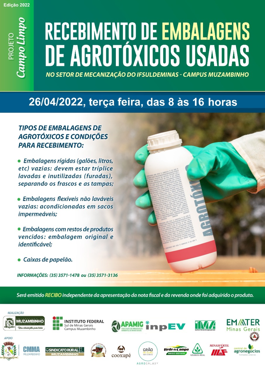 Mais Artigos AgronegócioDestaque Café em Foco, 07/01/26, Cotações e Informações da Cafeicultura DestaqueLazerParceiros Novas estreias no Cine14Bis: “A Empregada”, “Agentes Muito Especiais” , “Valor Sentimental” e “Tom & Jerry: Uma Aventura no Museu” Diversos Mercado de trabalho: confira quais são as áreas da saúde com maior demanda por profissionais qualificadosDestaqueDiversosNossa CidadeProjeto Campo Limpo em Muzambinho: Recebimento de embalagens de agrotóxicos usadas Redação25 de abril de 20221min0No setor de mecanização do IFSULDEMINAS Campus Muzambinho Post Views: 927LixoReciclagem
