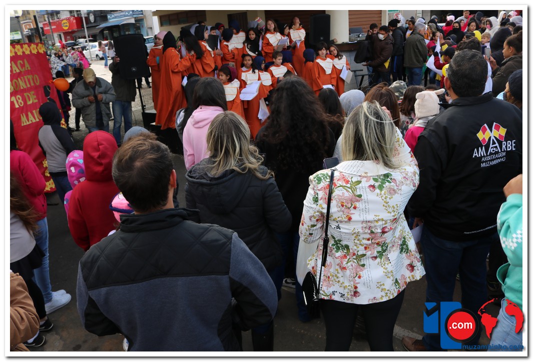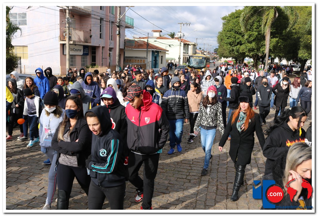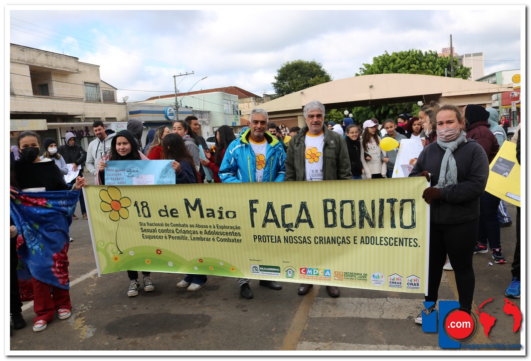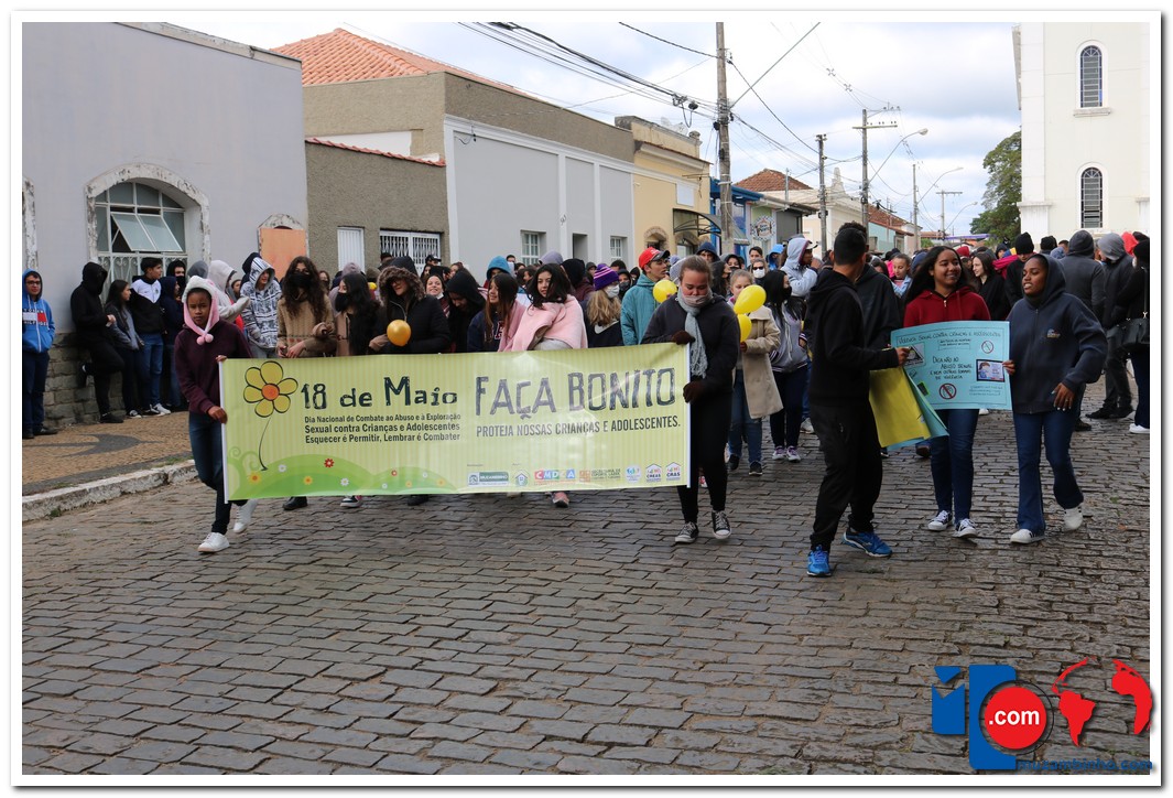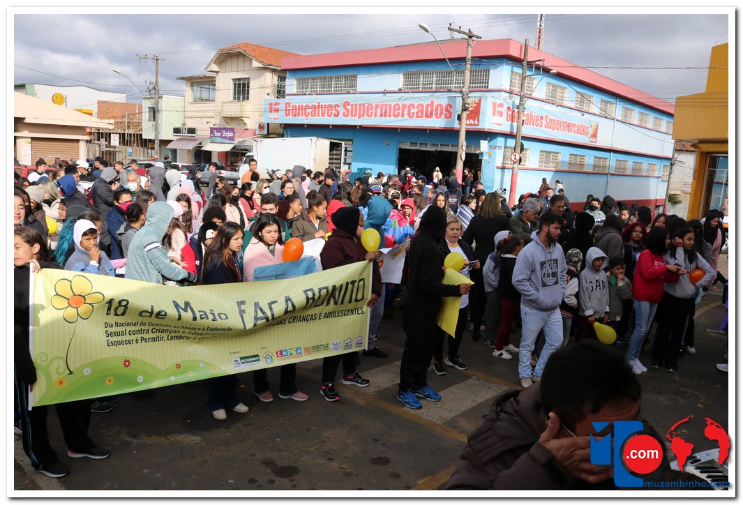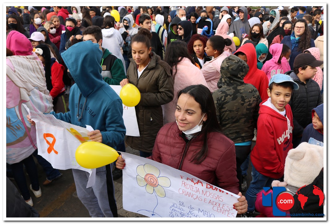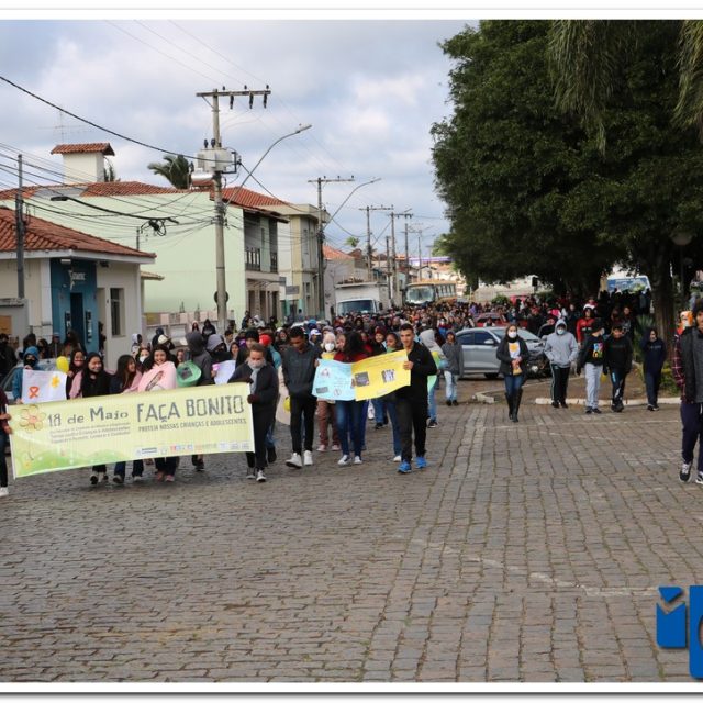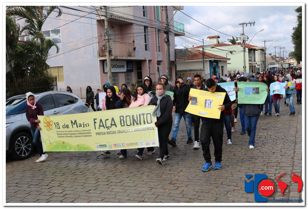 A caminhada aconteceu na manhã desta quarta-feira, 18/05, com saída no Cruzeiro de Pedra às 08:30 com percurso seguindo pela Avenida DR Américo Luz finalizando no Muzambódromo. Participaram da caminhada as Escolas Estaduais Cesário Coimbra e Prof. Salatiel de Almeida, Escolas Municipais Sagrado Coração de Jesus, Retiro, Frei Florentino, Francisca Alegretti Bianchi e Colégio Delta e Colégio Objetivo totalizando 1100 participantes. O Evento contou com a presença do Prefeito Municipal Paulinho Magalhães e da Vice Prefeita Heloísa Magalhães do Juiz Dr. Flavio Schimidt, Delegado da Policia Civil Dr Adnan Grava e o Presidente da Câmara Gilmar Labanca e apresentação do coral dos alunos da escola Sagrado Coração regidos pelo maestro Acácio Vieira e dança com Samuel Oliveira. O evento foi idealizado pelo Conselho Tutelar com o apoio da Secretaria de Educação, Secretária de Esporte, Lazer, Cultura E Turismo, CREAS, CRAS, poder Judiciário, Polícia Civil e Militar.
