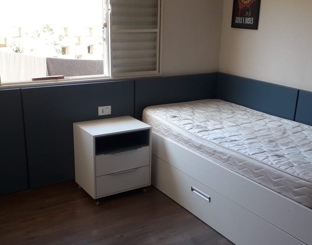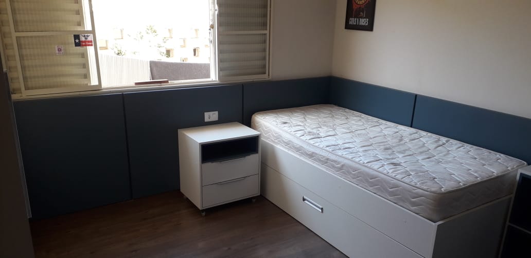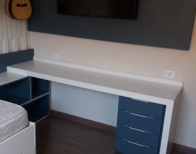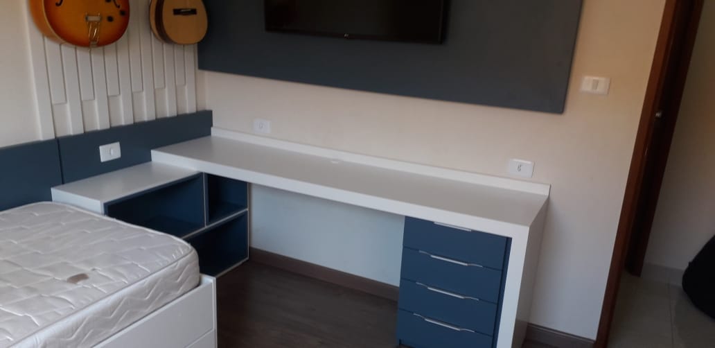 Quarto com suporte para violão, painel para tv, criado removível e bicama, todo planejado e feito em 100% em MDF de alta qualidade.