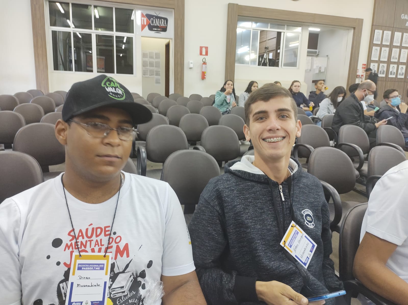 Os estudantes do Parlamento Jovem da Câmara Municipal de Muzambinho, alunos do Ensino Médio da Escola Salatiel de Almeida e do IF campus Muzambinho participam do ENCONTRO REGIONAL DO PARLAMENTO JOVEM DE MINAS, na cidade de Passos. Com o tema: Saúde Mental dos Jovens.