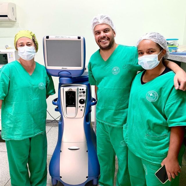 Realizando cirurgias como de cataratas, em colocação de lentes de contato e muito mais.