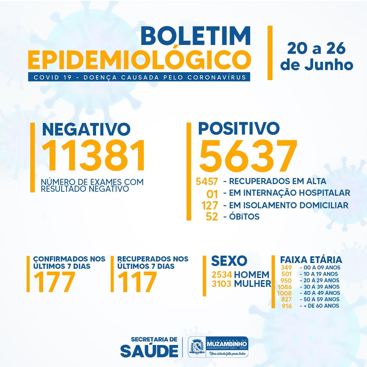 Boletim COVID-19 20/06 a 26/06/22 – 51° e 52°óbitos em Muzambinho
