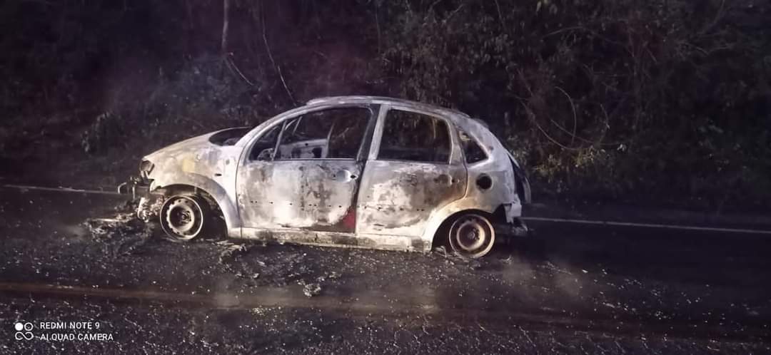 Veículo pega fogo entre Nova Resende e Juruaia