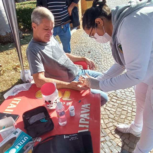 Foram realizados testes de glicemia, aferição de pressão arterial e orientações relacionadas a saúde.