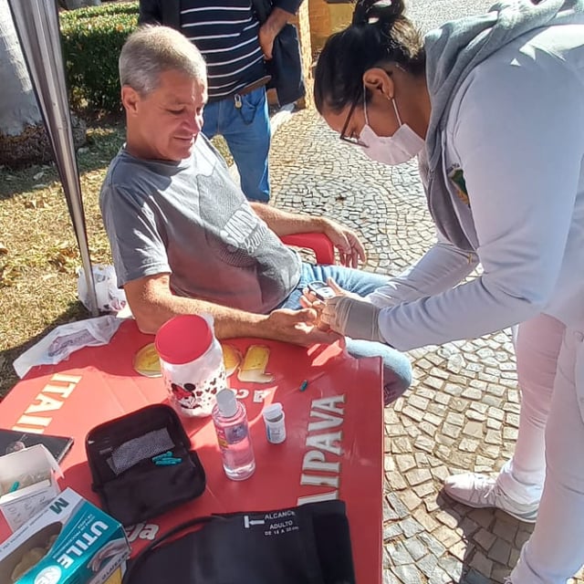 Foram realizados testes de glicemia, aferição de pressão arterial e orientações relacionadas a saúde.