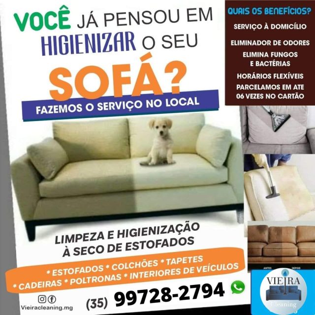 Chame por Vieira Cleaning, responsável por lavagem e higienizadas a seco de estofados em geral
