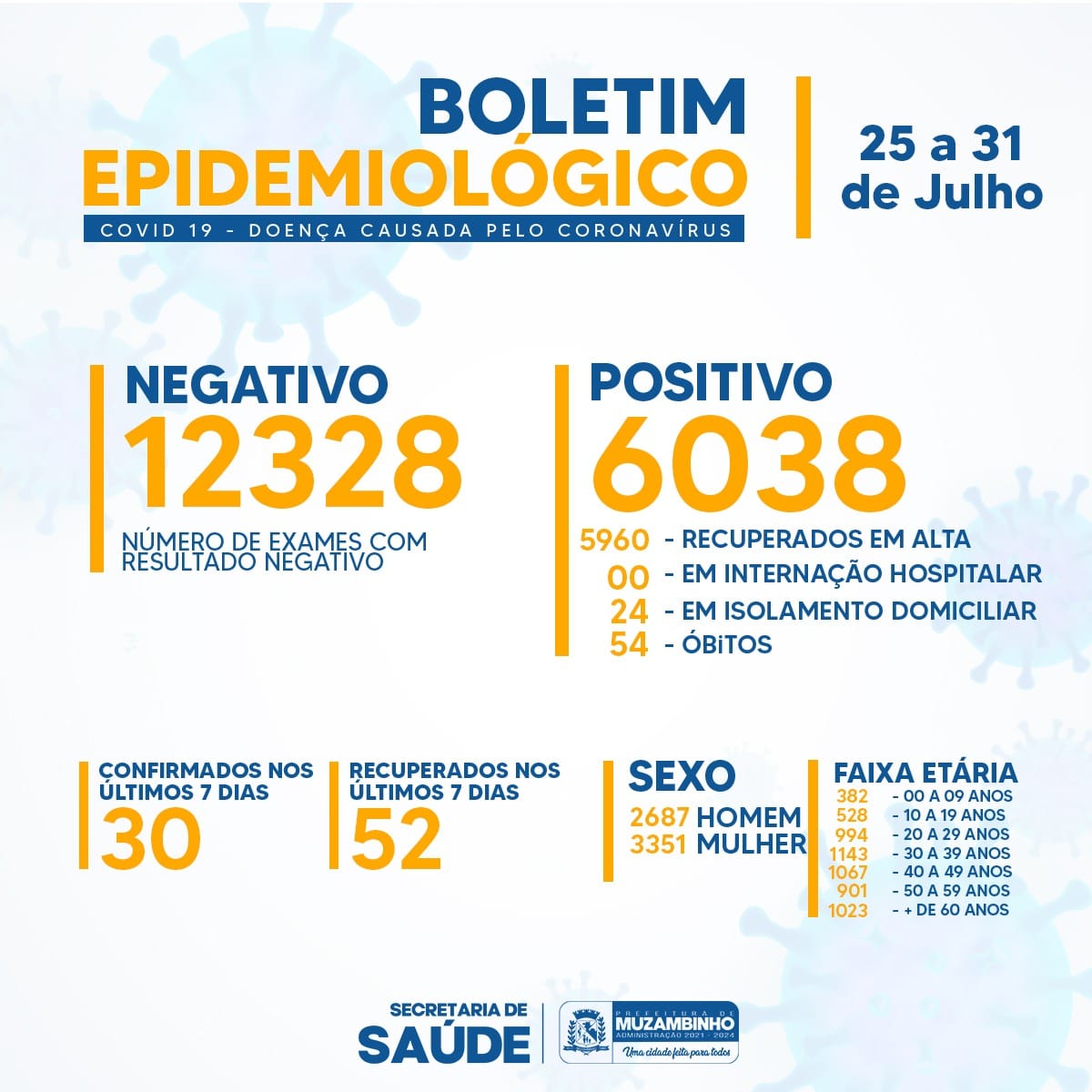 Boletim COVID-19 – Boletim Semanal 25/07 a 31/07/22 – Muzambinho/MG