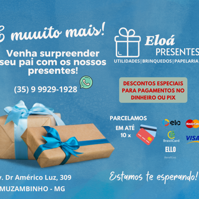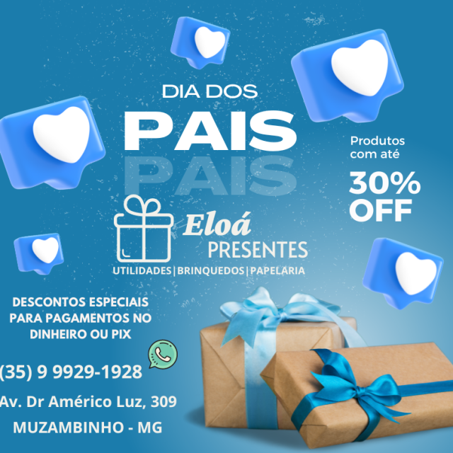 Mais Artigos DestaqueObituário Faleceu aos 77 anos a Sra. Marina de Jesus Silva EconomiaParceiros Sicredi das Culturas RS/MG realiza o pagamento de mais de R$ 6,4 milhões em Juros ao Capital dos associados AniversáriosDestaqueNossa CidadeParceiros Ingrid e Marcelo Rosa celebram aniversários com almoço especial em MuzambinhoDestaqueParceirosDia dos Pais na Eloá Presentes com até 30% de desconto Redação11 de agosto de 20221min0 Descontos especiais para pagamentos em dinheiro ou PIX Post Views: 845LojaPresentespromoção
