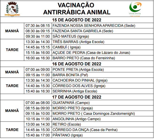 Campanha de Vacinação Antirrábica para cães e gatos em Muzambinho