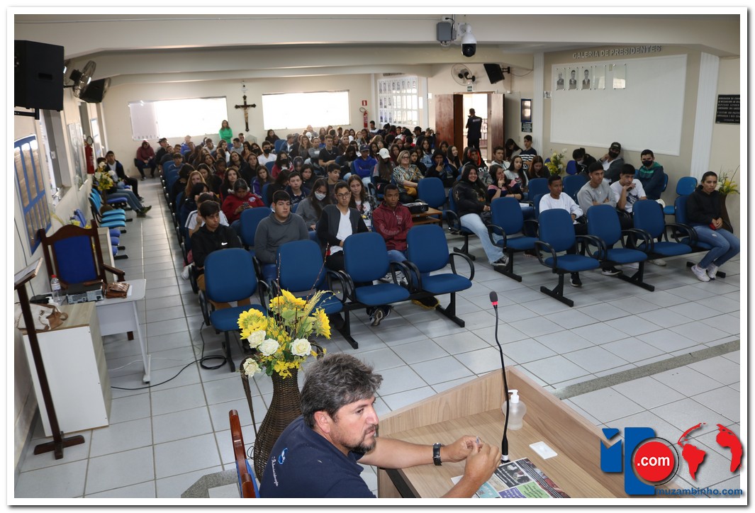 Em Muzambinho, na manhã desta quinta-feira, 18/8, alunos da Escola Estadual Salatiel de Almeida se reuniram no Plenário da Câmara, e através de diversas perguntas, buscaram respostas do Executivo e Legislativo para seus anseios e dúvidas sobre estes poderes que estão a frente do município.