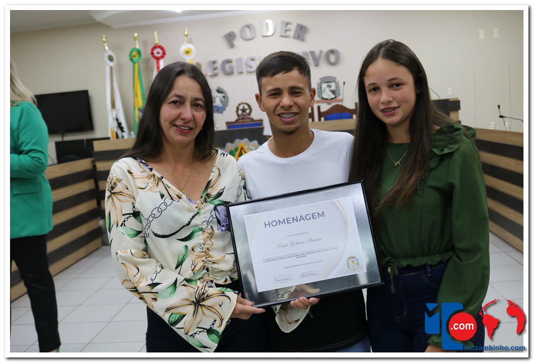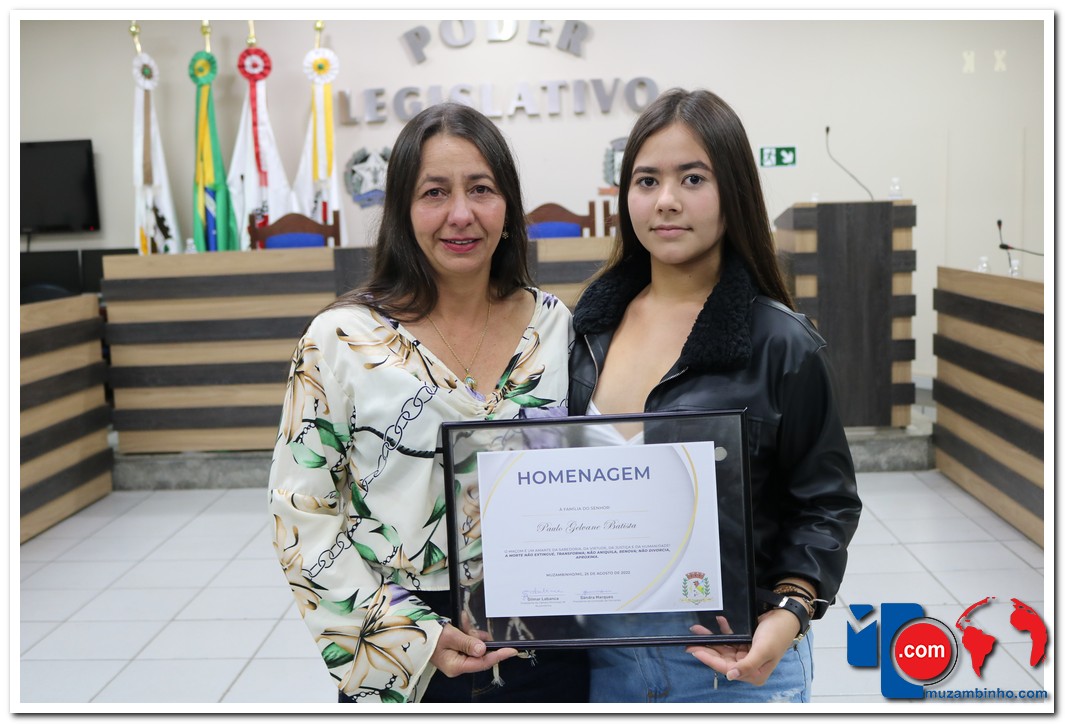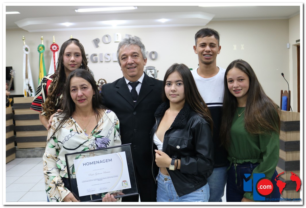 – Paulo Gelvane Batista, que nasceu em Muzambinho no dia 27 de abril de 1973 e faleceu em 19 de janeiro de 2021. A esposa Cláudia Helena da Silva Batista recebeu a homenagem das mãos da vereadora Jacqueline Krauss.