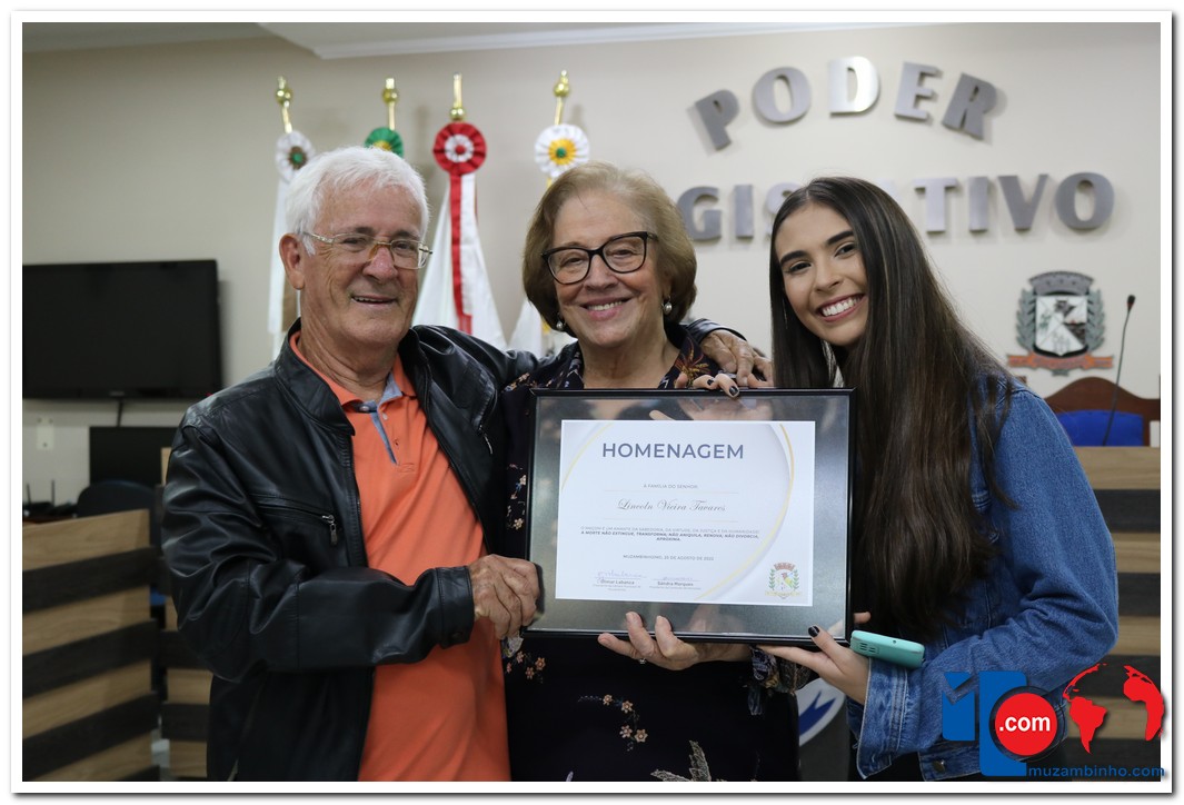 – Lincoln Vieira Tavares, que nasceu na cidade de Guaxupé no dia 08 de julho de 1940 e faleceu em Muzambinho no dia 28 de março de 2021. A esposa Zélia dos Santos Tavares recebeu a homenagem através do presidente da Câmara, vereador Gilmar Martins Labanca.
