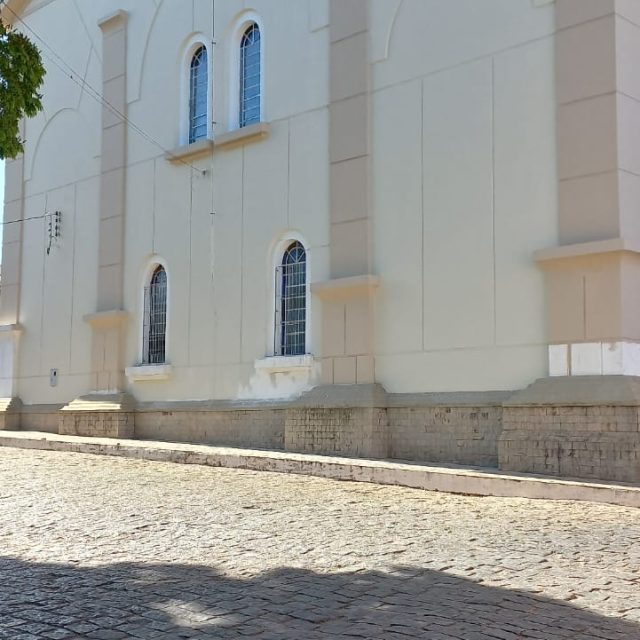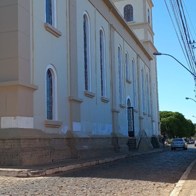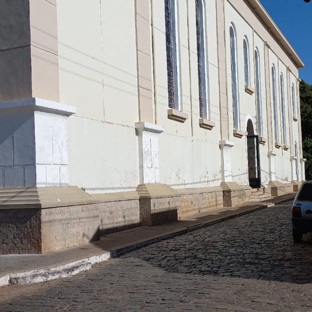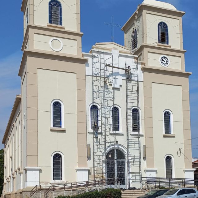 Confira nas imagens este processo da reta final de pintura da igreja matriz