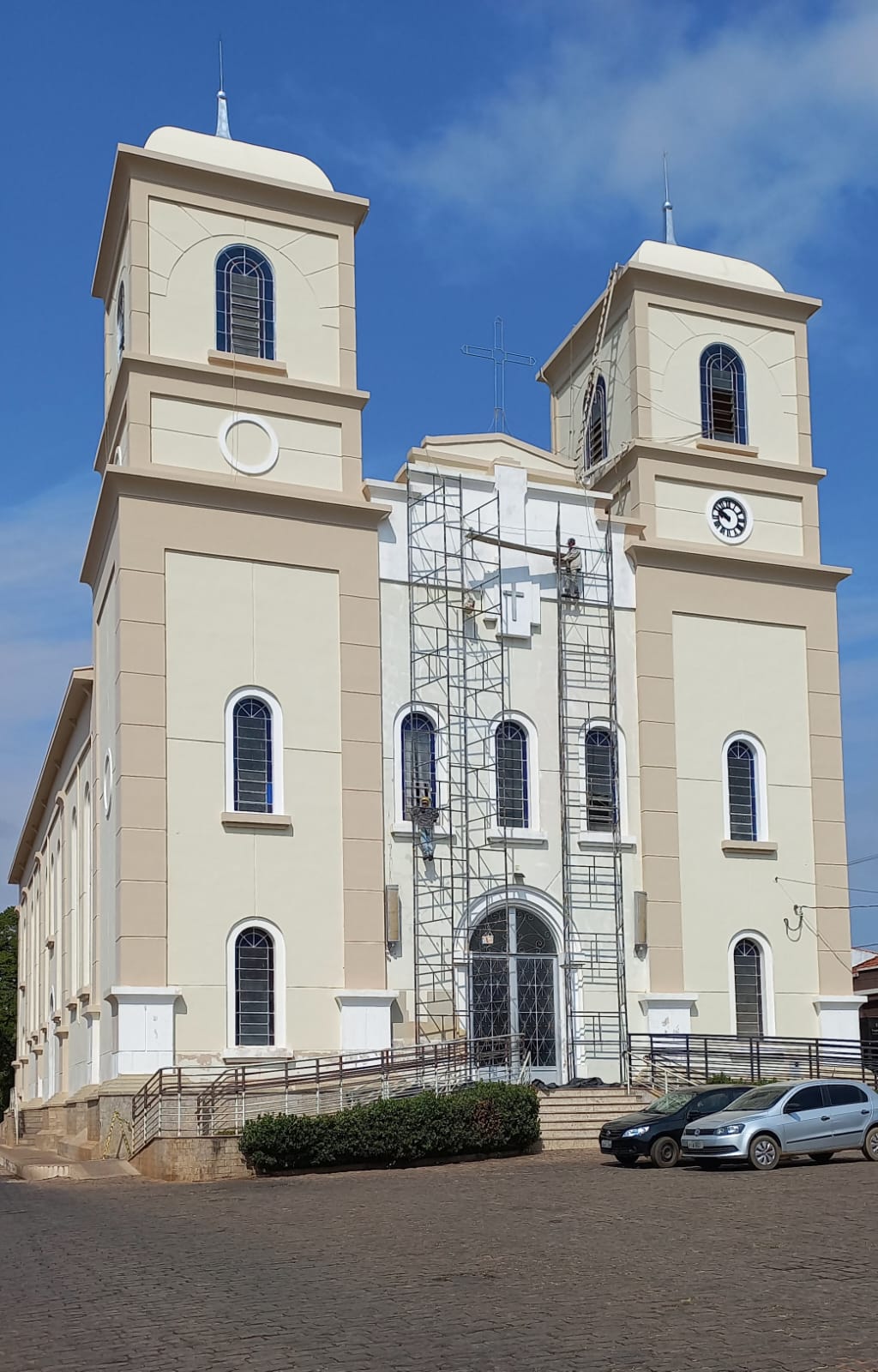 Confira nas imagens este processo da reta final de pintura da igreja matriz