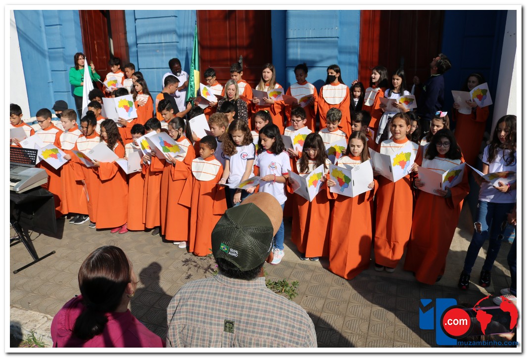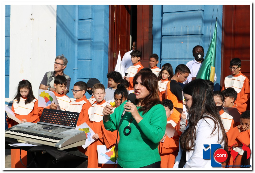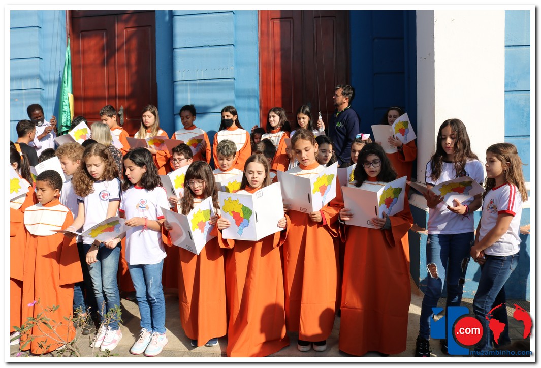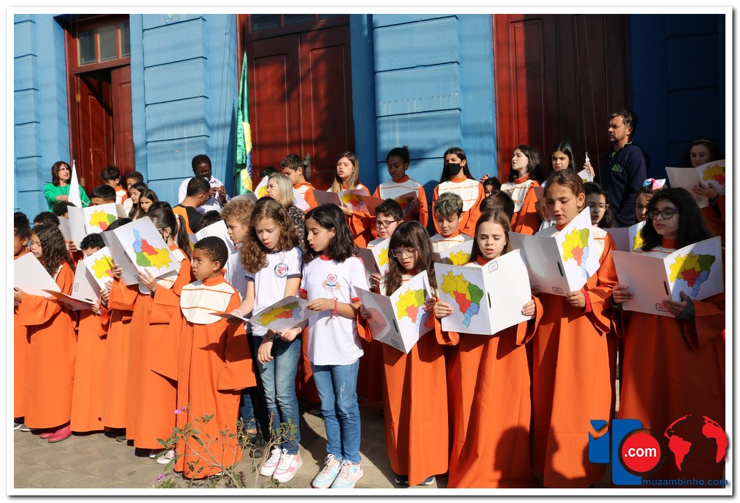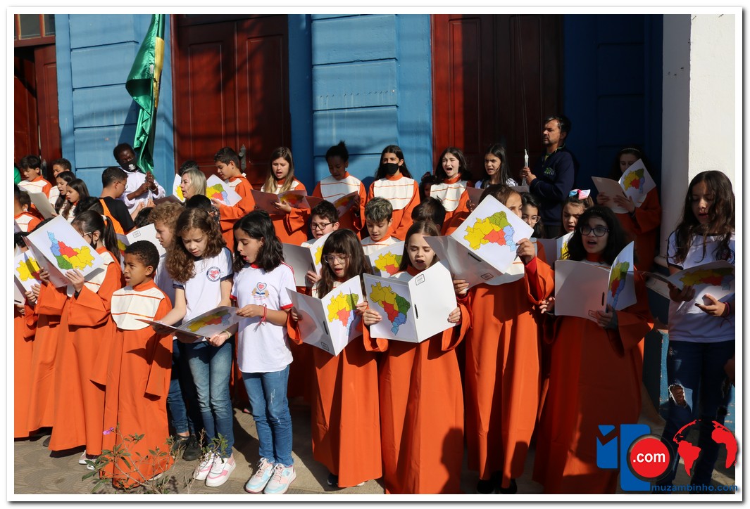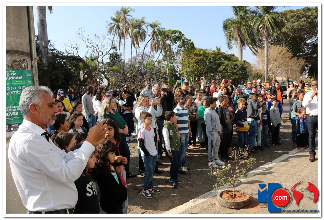 Autoridades, pais e muzambinhenses prestigiaram o evento que aconteceu em frente o Paço Municipal, o muzambinhense carnavalesco “Ditão”, foi o convidado especial e hasteou o Pavilhão Nacioinal.