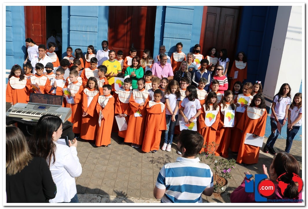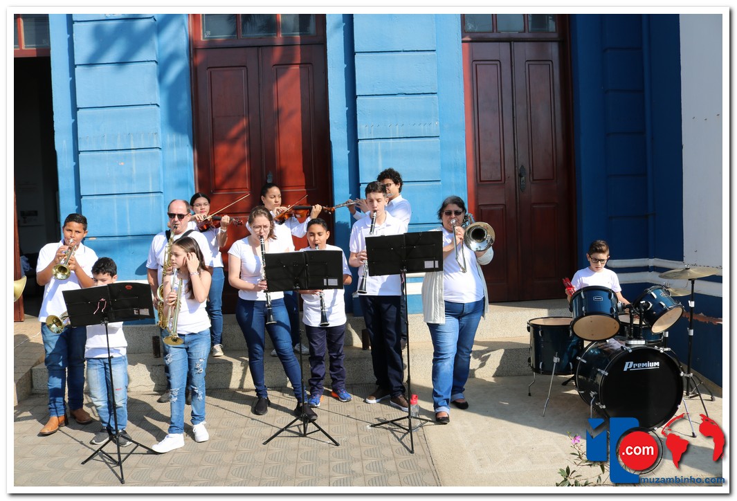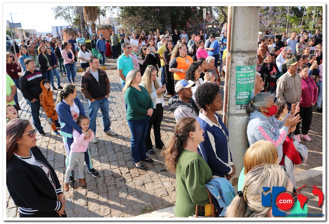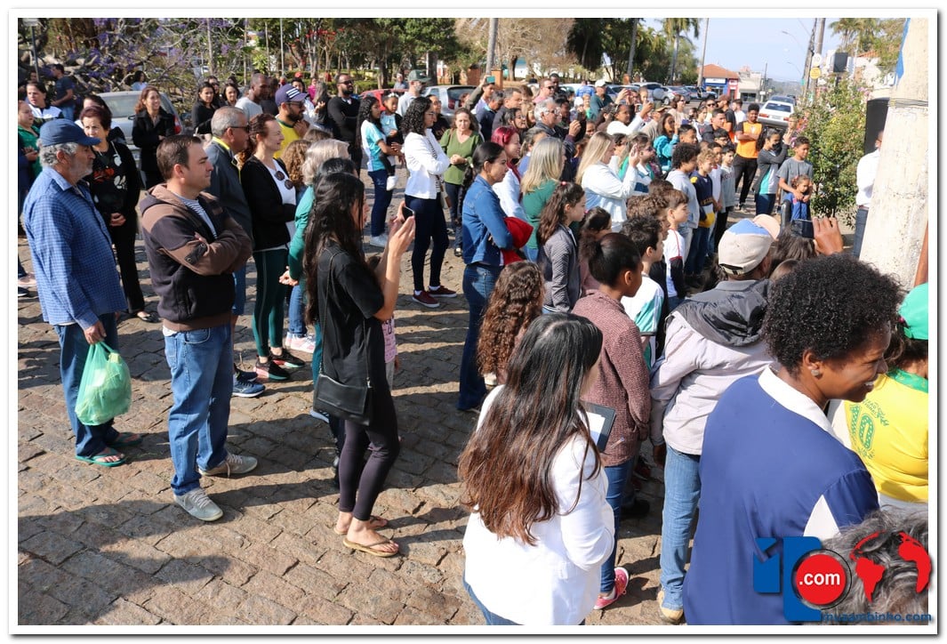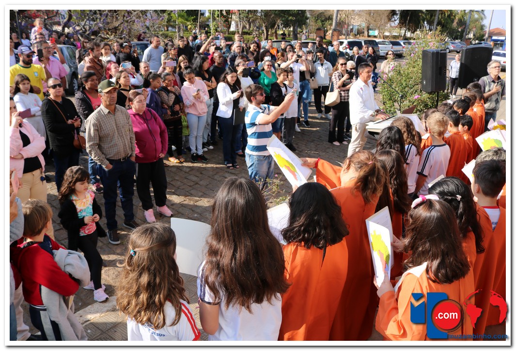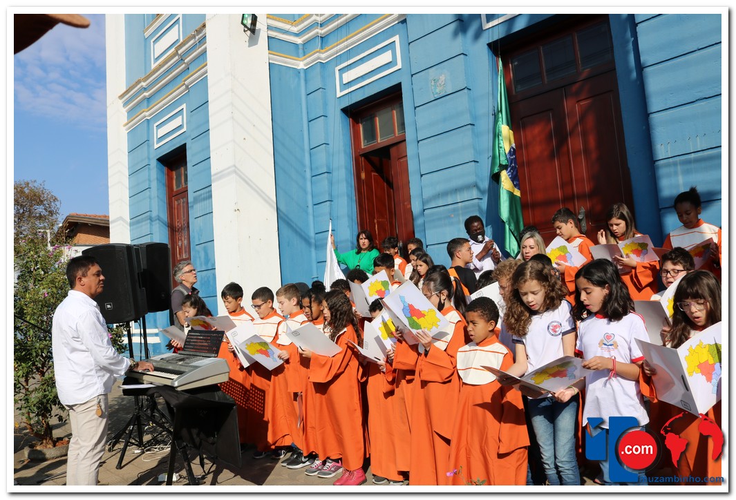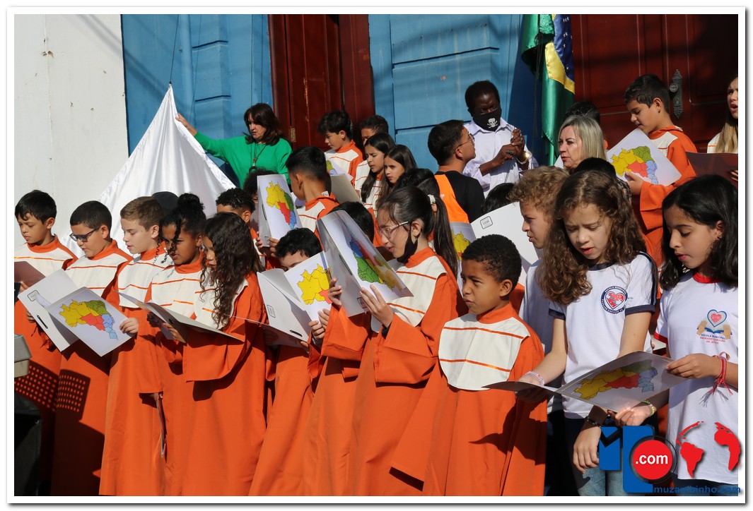 Autoridades, pais e muzambinhenses prestigiaram o evento que aconteceu em frente o Paço Municipal, o muzambinhense carnavalesco “Ditão”, foi o convidado especial e hasteou o Pavilhão Nacioinal.