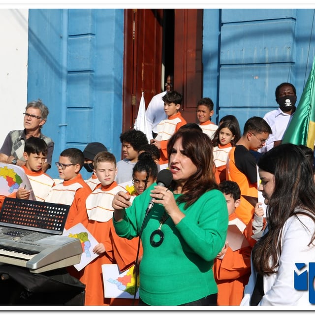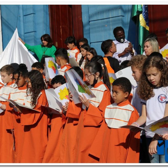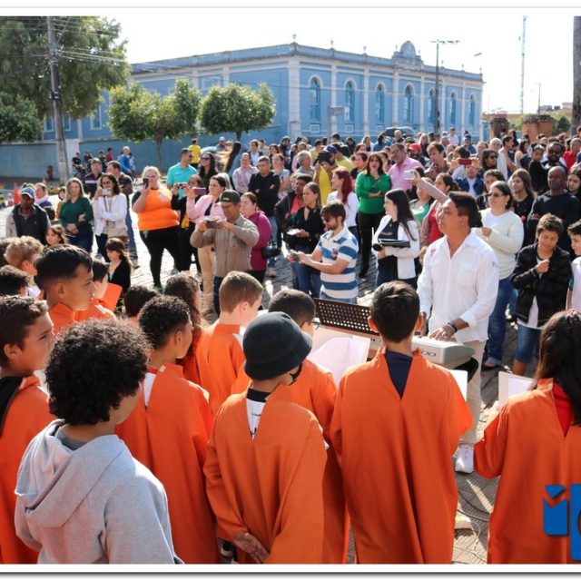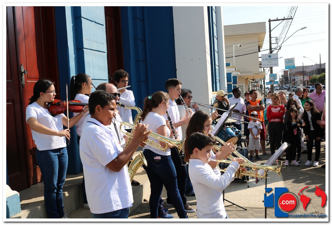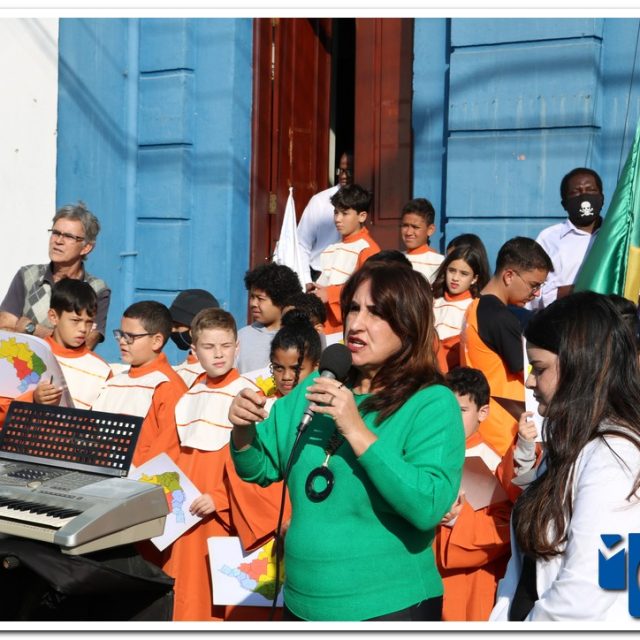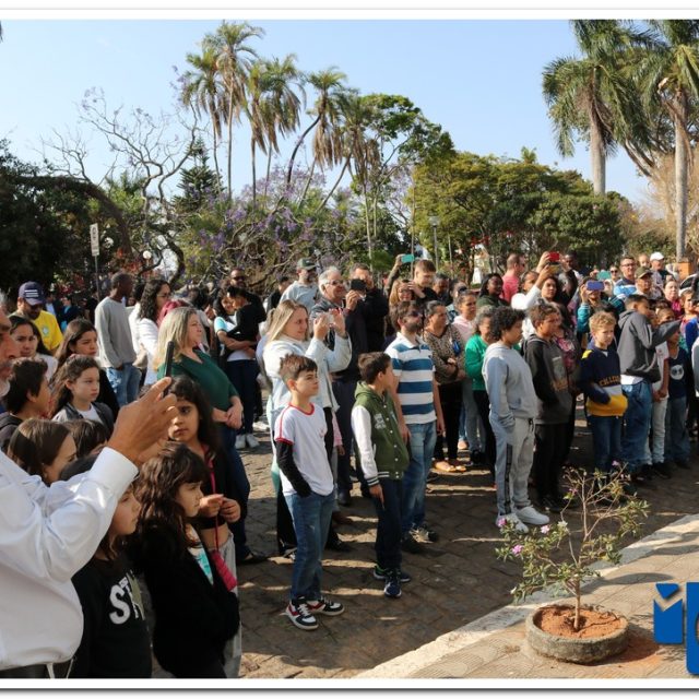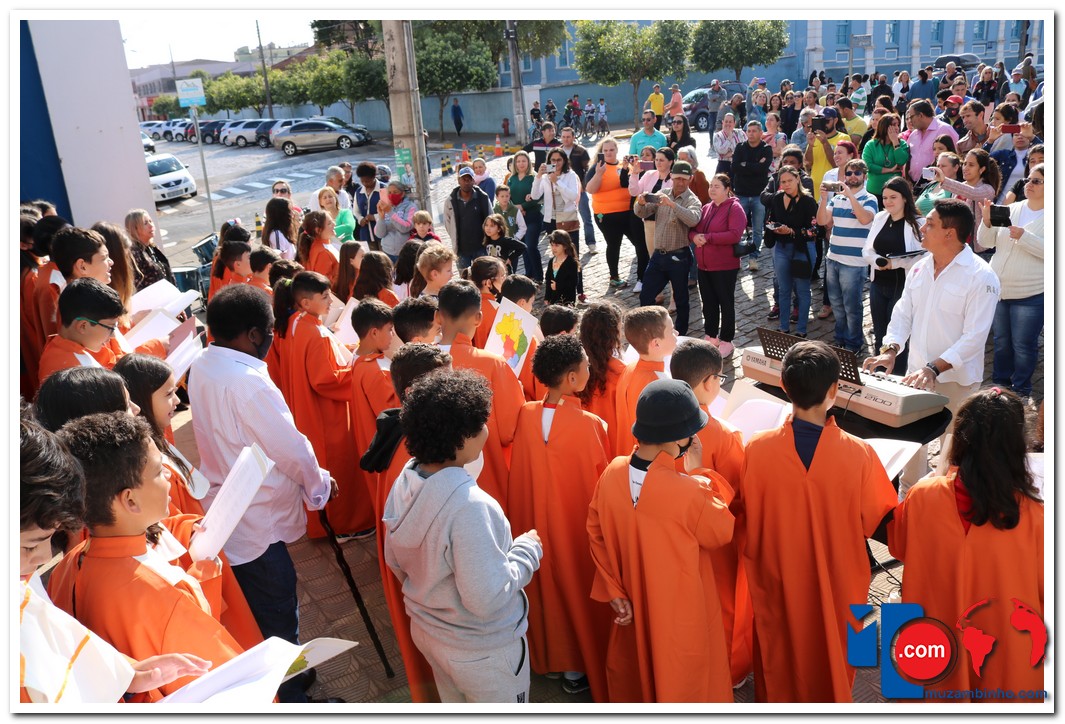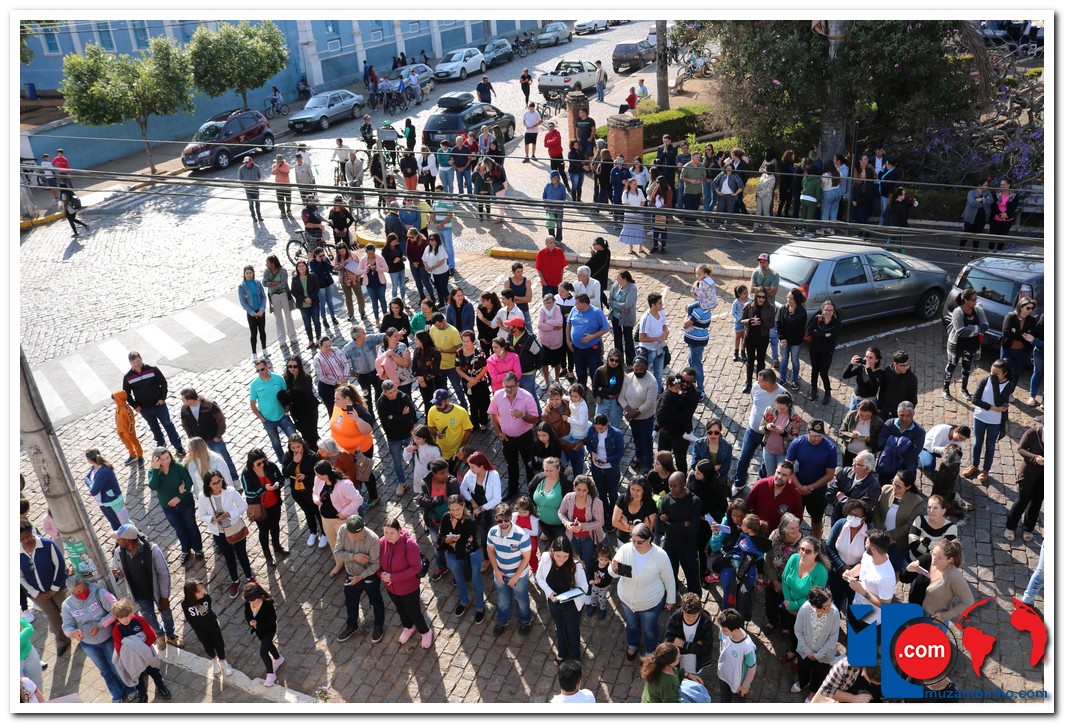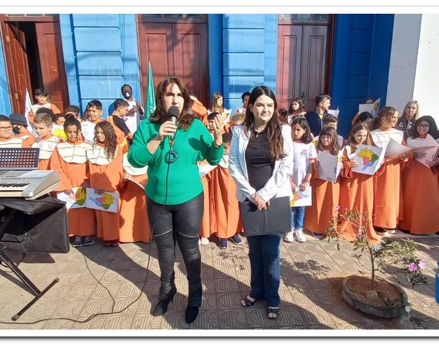 Autoridades, pais e muzambinhenses prestigiaram o evento que aconteceu em frente o Paço Municipal, o muzambinhense carnavalesco “Ditão”, foi o convidado especial e hasteou o Pavilhão Nacioinal.