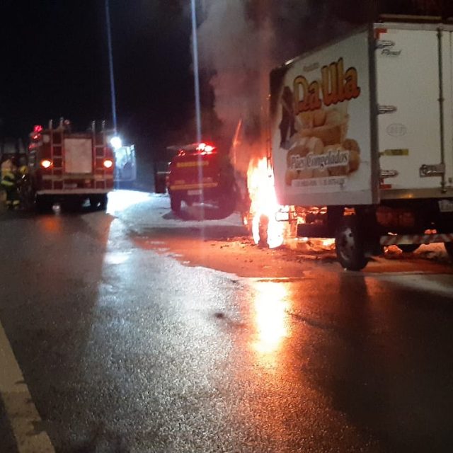 Além do caminhão teve também a carteira e o celular do motorista consumidos pelo fogo